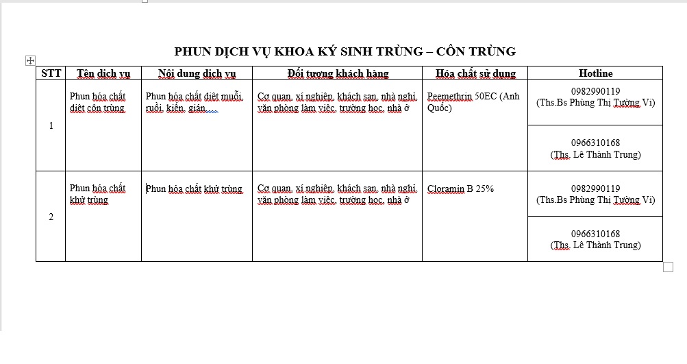 Bảng giá Phun hóa chất dịch vụ