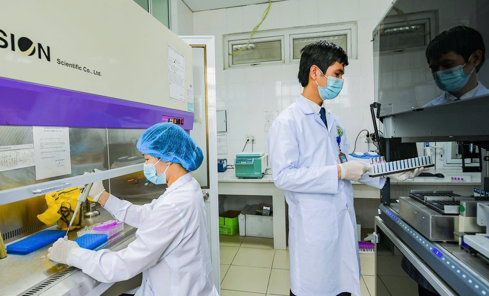 Các kỹ thuật viên Bệnh viện Bệnh nhiệt đới Hải Dương đang thực hiện xét nghiệm trong phòng thí nghiệm hiện đại, phục vụ công tác chẩn đoán và phòng chống dịch