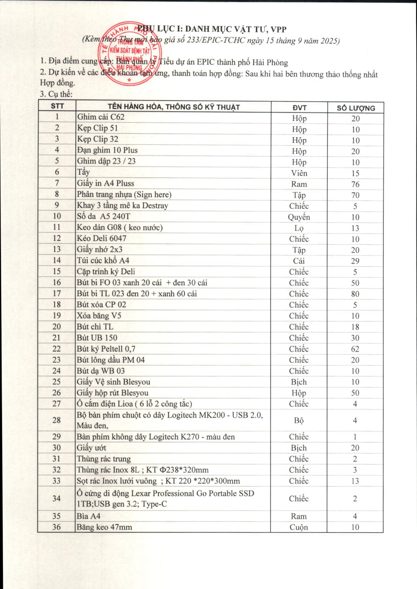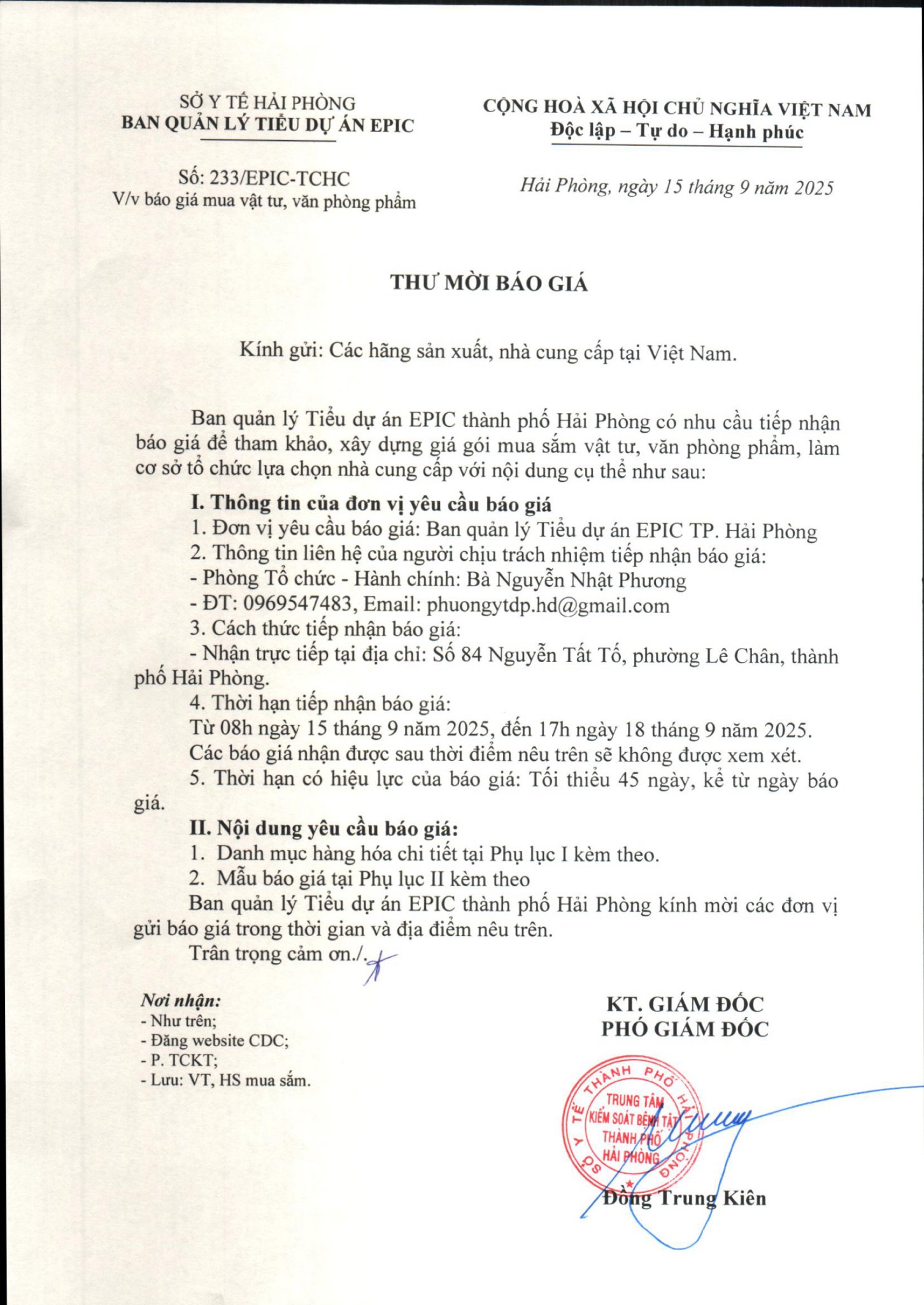 Trang chủThông tin mua sắmThư mời báo giá, vật tư văn phòng Thư mời báo giá, vật tư văn phòng 15 Tháng 9, 2025 Chia sẻ Facebook Email Print 233 Thư mời báo giá mua vật tư, văn phòng XEM THÊM Thu hồi lô cốm pha hỗn dịch uống Pyfaclor Kid do vi phạm mức độ 2 8 Tháng 10, 2025 1869 Thư mời báo giá khoa Sức khoẻ sinh sản 8 Tháng 10, 2025 1849 Thư mời báo giá 8 Tháng 10, 2025 TIN PHỔ BIẾN Thu hồi lô cốm pha hỗn dịch uống Pyfaclor Kid do vi phạm mức độ 2 8 Tháng 10, 2025 1869 Thư mời báo giá khoa Sức khoẻ sinh sản 8 Tháng 10, 2025 1849 Thư mời báo giá 8 Tháng 10, 2025 1848 Thư mời báo giá Hoá chất, vật tư xét nghiệm nước, thực phẩm, không khí 8 Tháng 10, 2025 Xem thêm