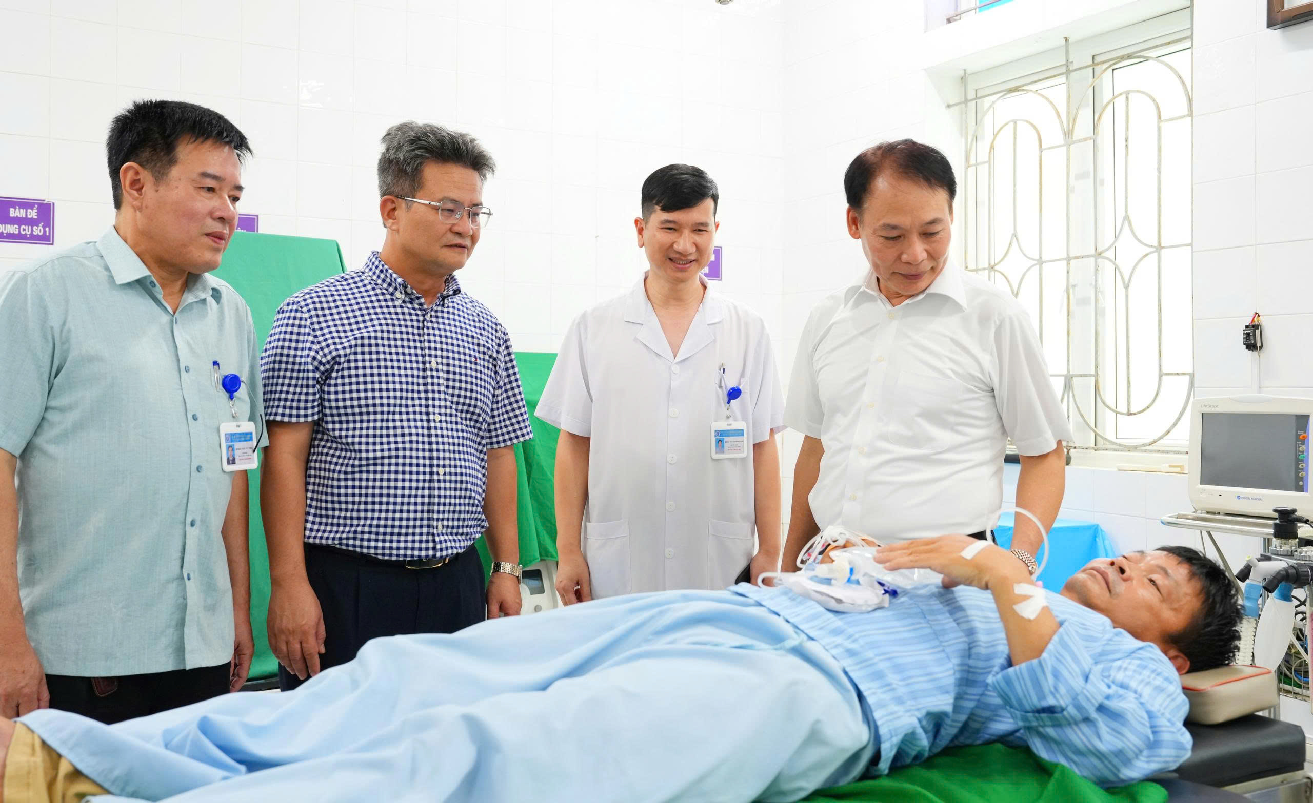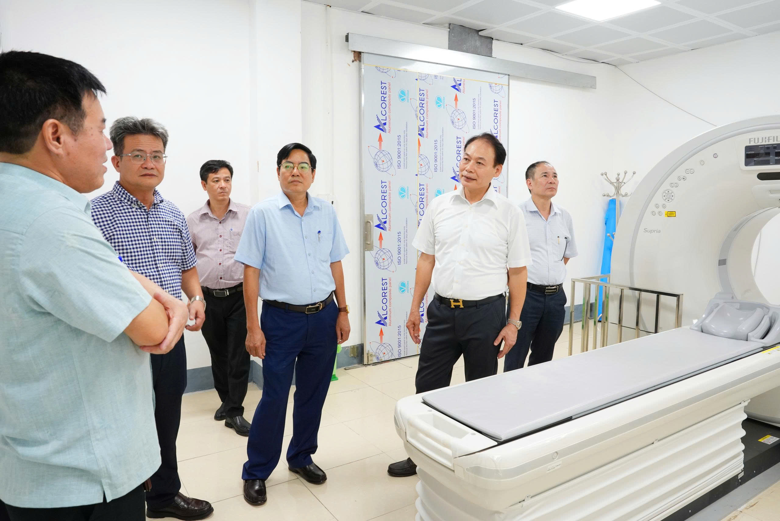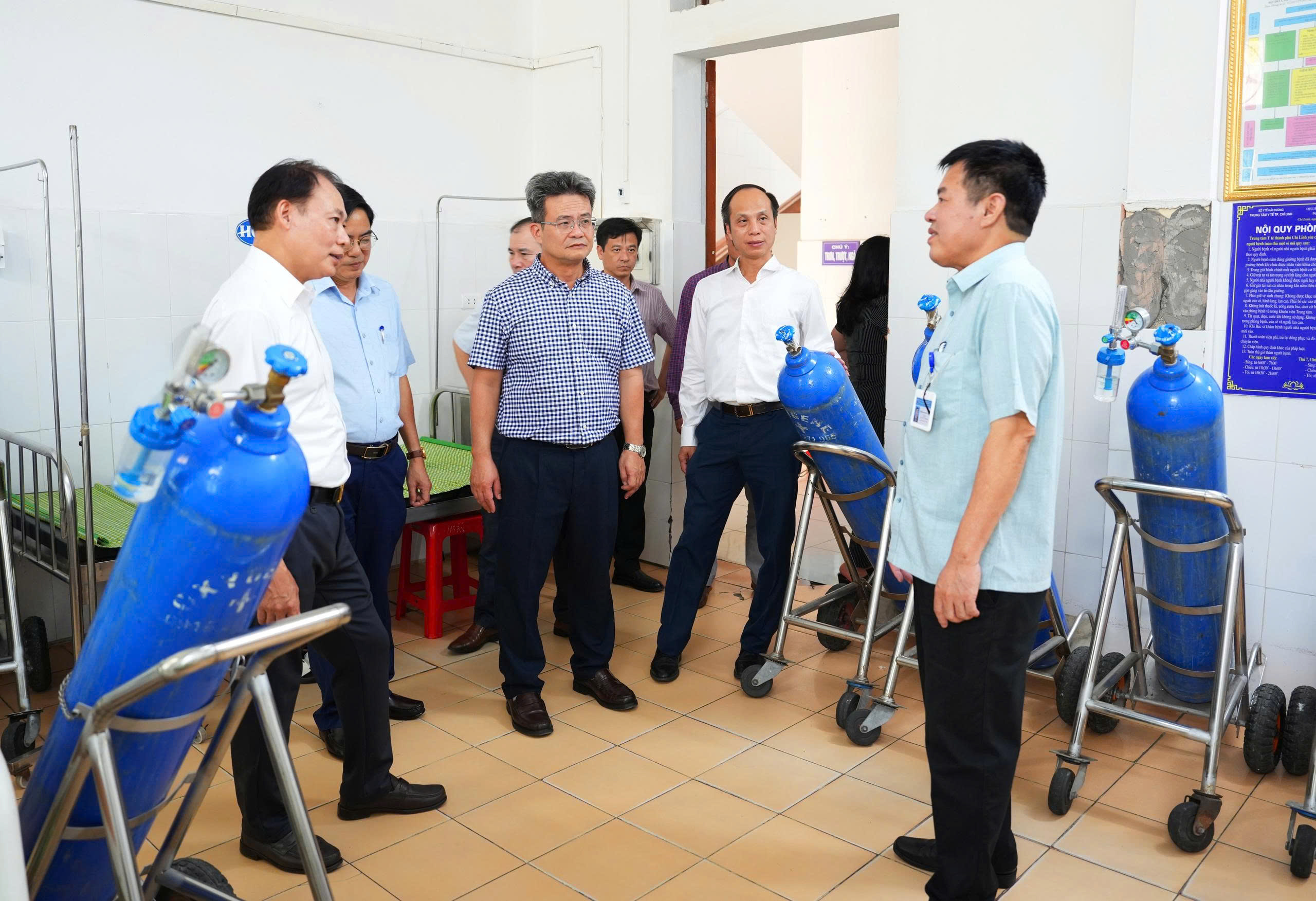 Giám đốc Sở Y tế Lê Minh Quang và các đồng chí lãnh đạo sở kiểm tra cơ sở hạ tầng và trang thiết bị khám chữa bệnh Trung tâm Y tế Chí Linh
