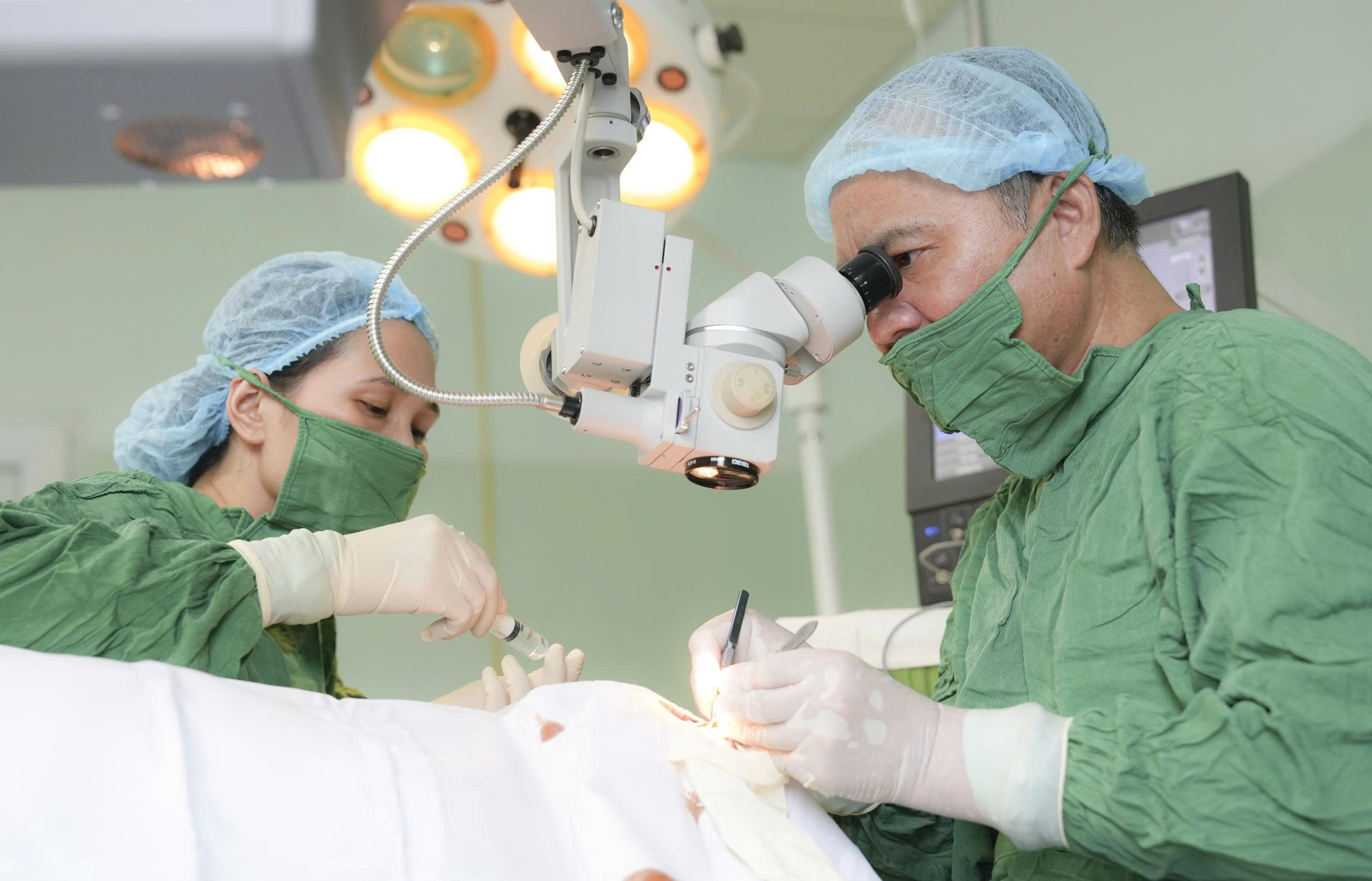 Phẫu thuật đục thủy tinh thể cho người cao tuổi sau đợt khám tại Trung tâm Y tế Kim Thành