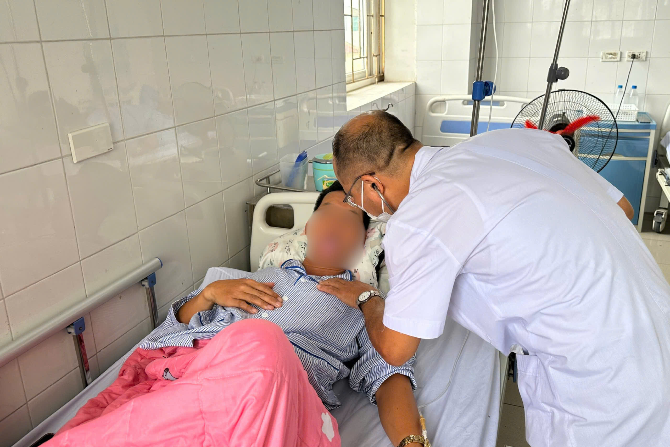 Bác sĩ CKI Nguyễn Tiến Phương đang thăm khám cho bệnh nhân T.