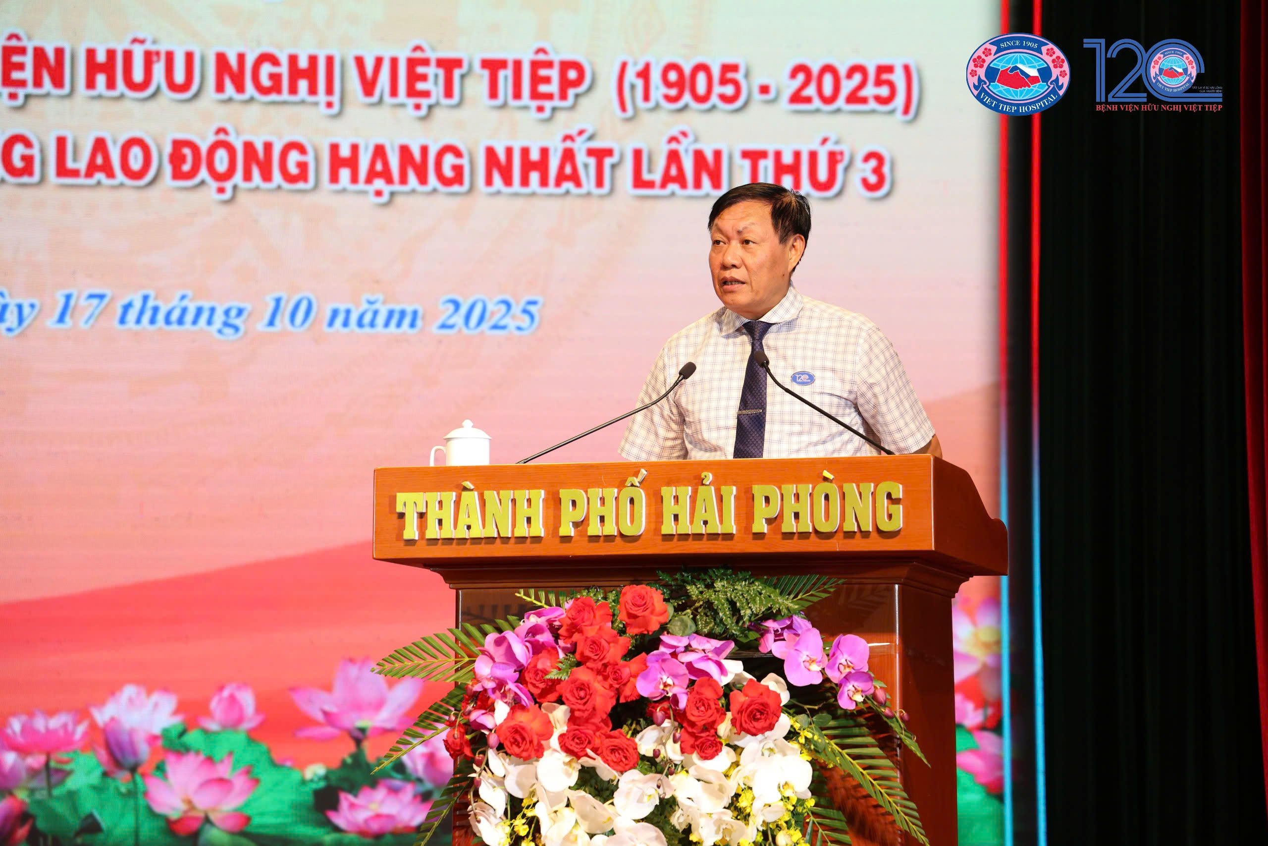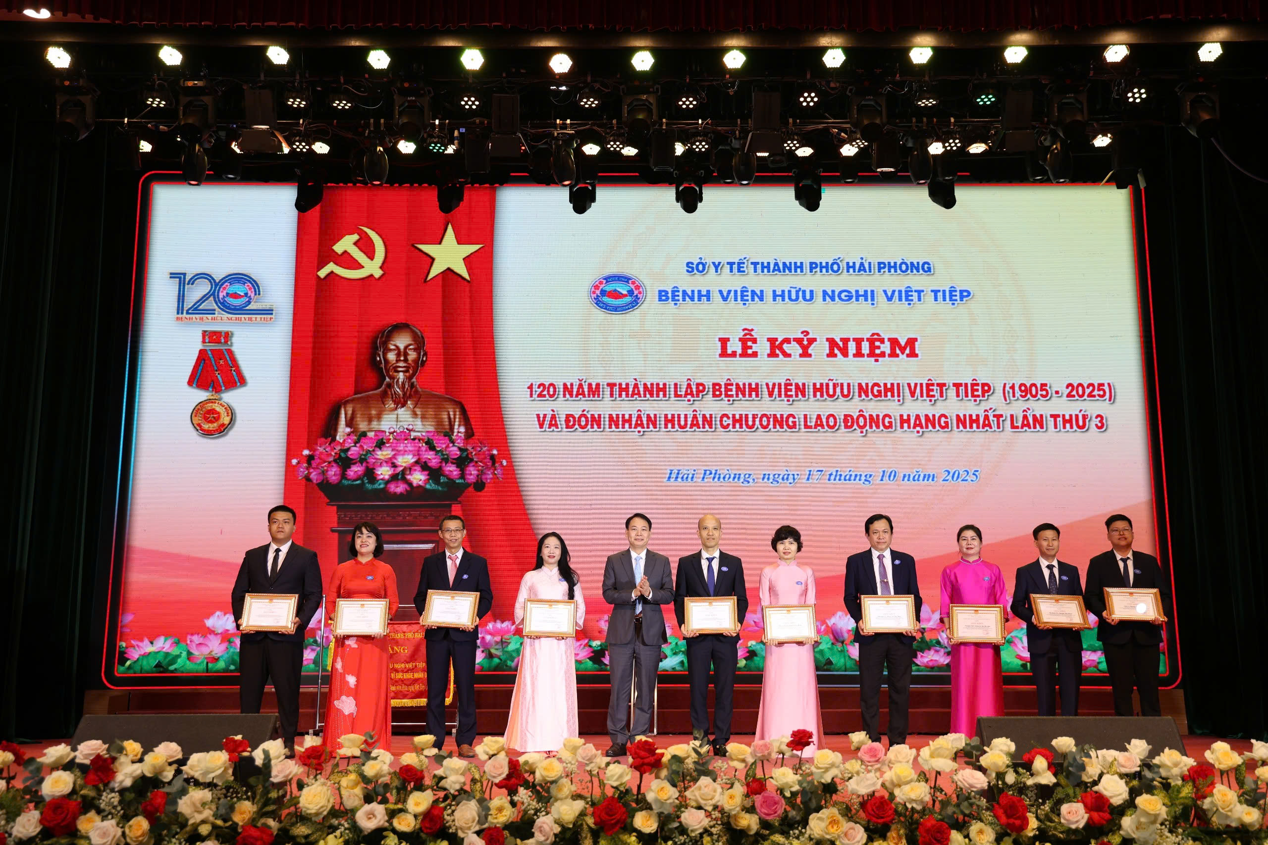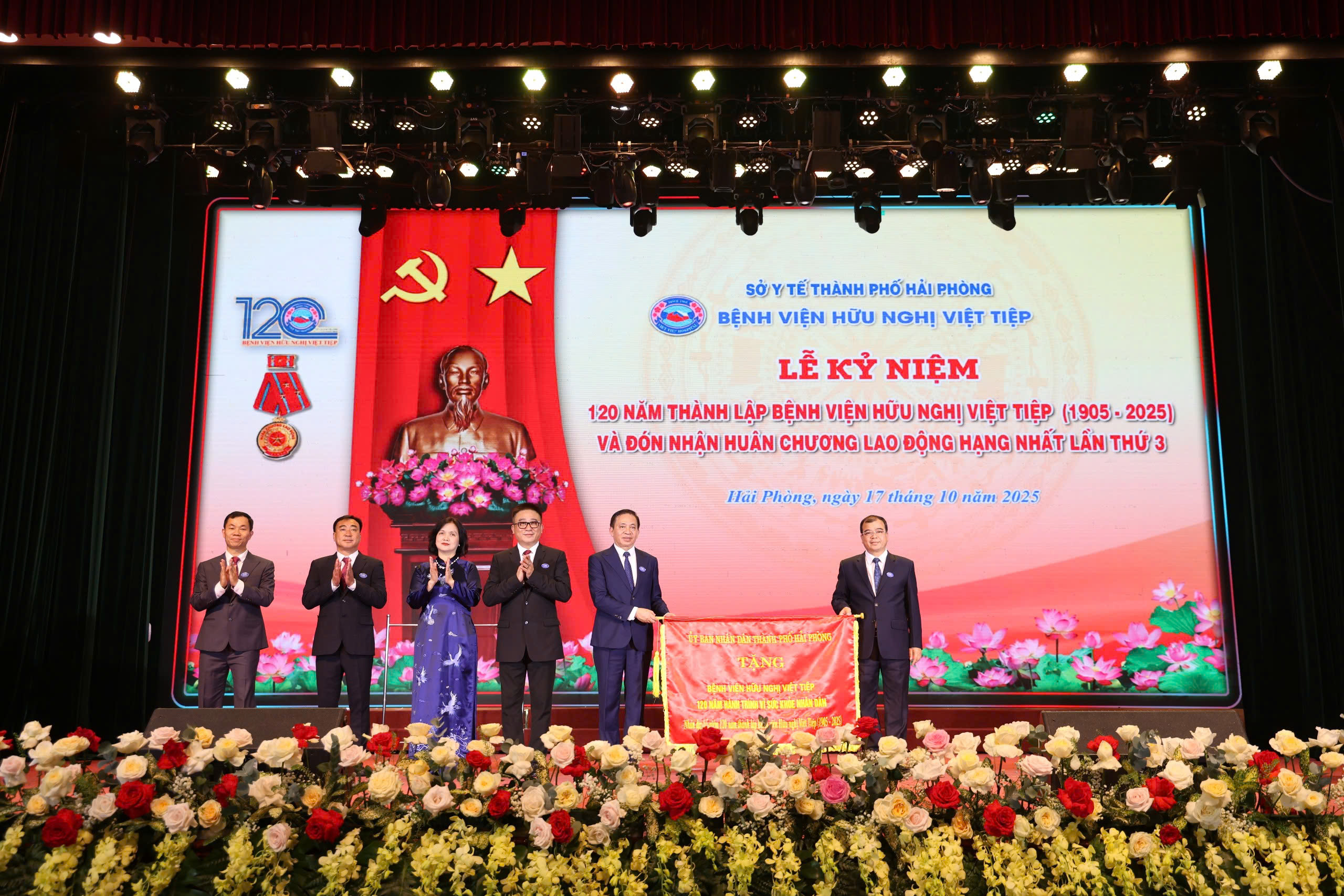 Sáng 17/10, trong không khí hân hoan, phấn khởi của những ngày thu lịch sử, tại Cung Văn hoá Lao động Hữu nghị Việt Tiệp (TP Hải Phòng), Bệnh viện Hữu Nghị Việt Tiệp long trọng tổ chức Lễ kỷ niệm 120 năm thành lập (1905 – 2025) và đón nhận Huân chương Lao động hạng Nhất lần thứ ba – phần thưởng cao quý của Đảng và Nhà nước, ghi nhận những đóng góp to lớn của các thế hệ cán bộ, viên chức, người lao động trong sự nghiệp chăm sóc, bảo vệ và nâng cao sức khỏe Nhân dân.
