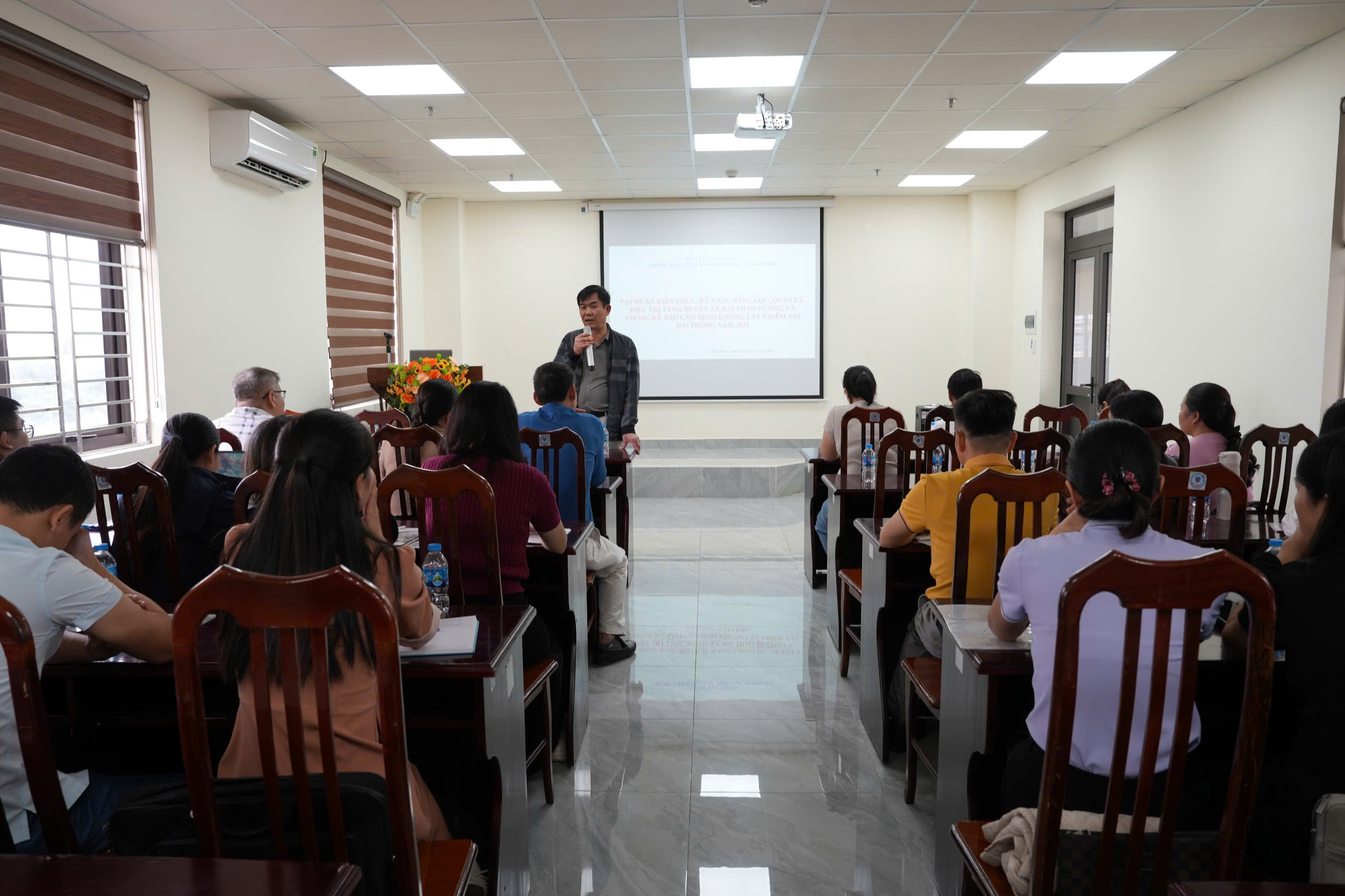 Tại lớp tập huấn, giảng viên của Khoa Phòng chống bệnh không lây nhiễm – CDC Hải Phòng đã cập nhật các hướng dẫn chuyên môn mới nhất của Bộ Y tế về chẩn đoán, điều trị tăng huyết áp và đái tháo đường; hướng dẫn phương pháp, công cụ sàng lọc, thống kê, báo cáo theo Thông tư 23/2023/TT-BYT. Học viên cũng được thảo luận tình huống thực tế, chia sẻ kinh nghiệm triển khai tại cơ sở.
