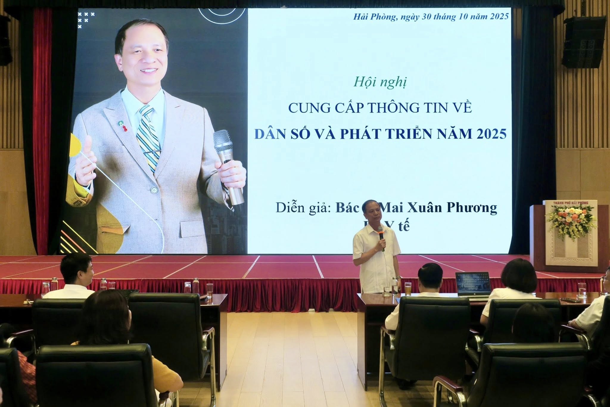 ThS.BS Mai Xuân Phương, Nguyên Phó Vụ trưởng Vụ Truyền thông giáo dục – Tổng cục Dân số (nay là Cục Dân số), Bộ Y tế thông tin với đại biểu về tổng quan Dân số và Phát triển