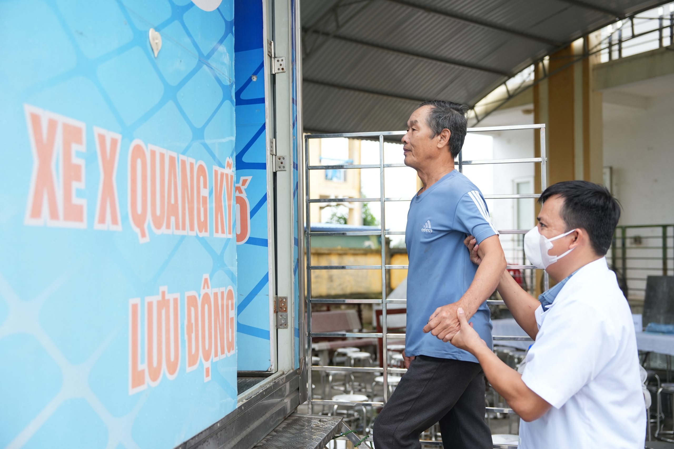 Hướng dẫn người dân lên chụp Xquang trên xe lưu động