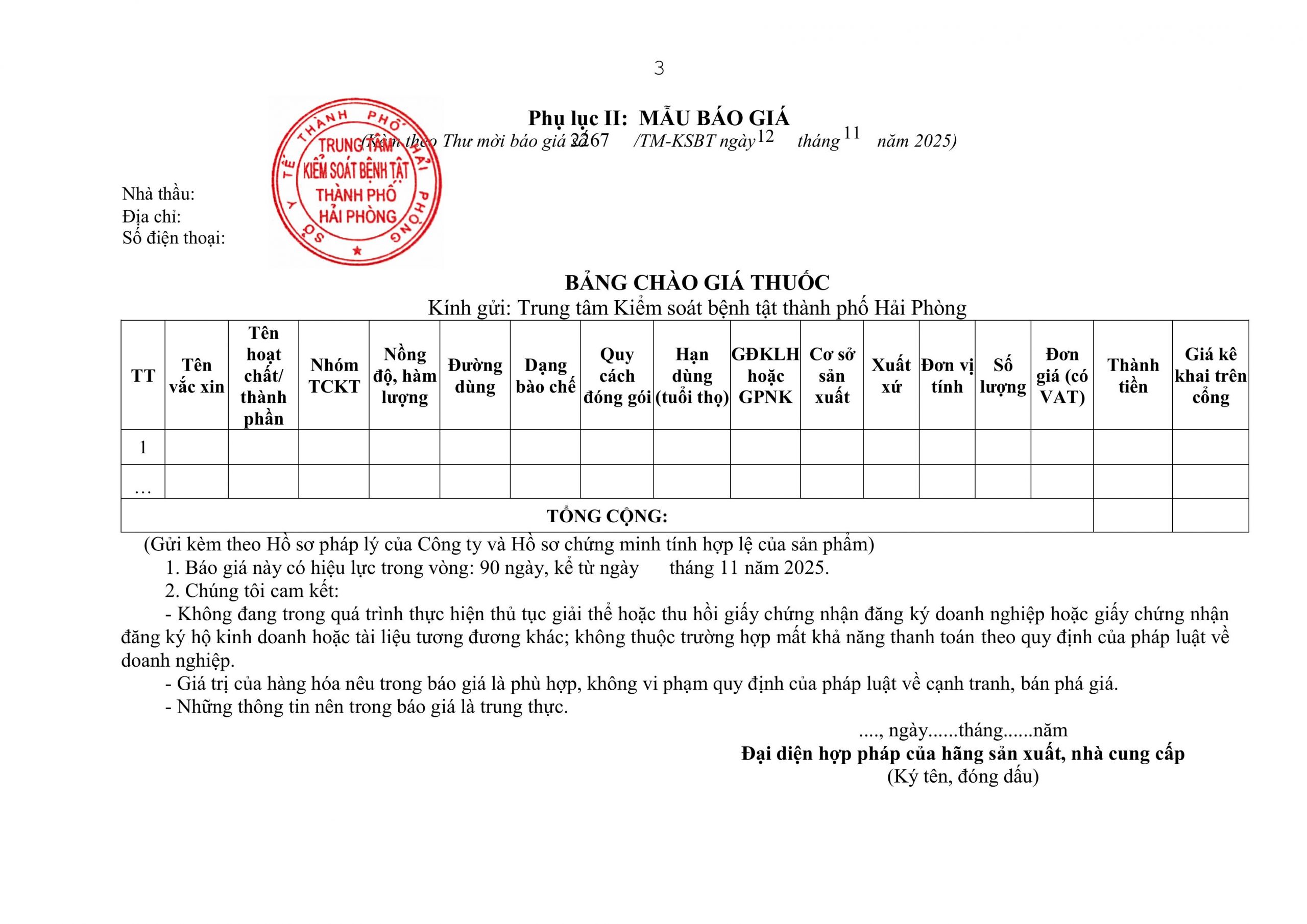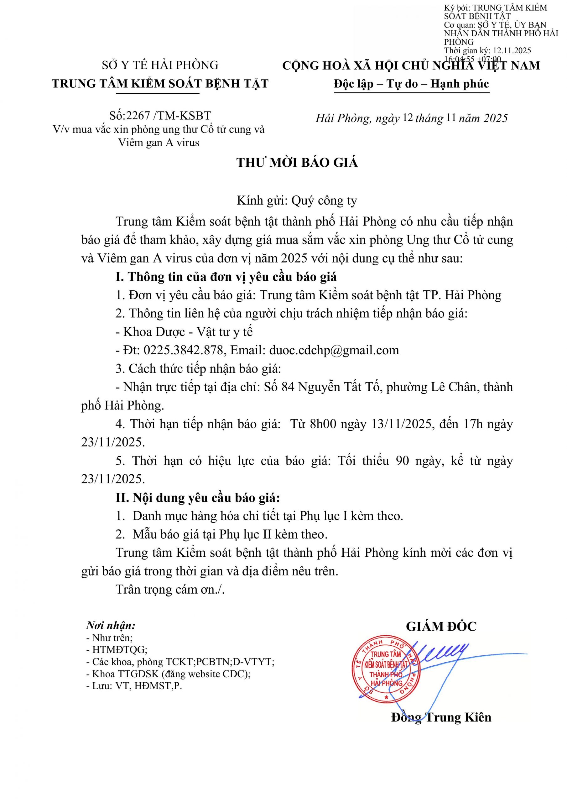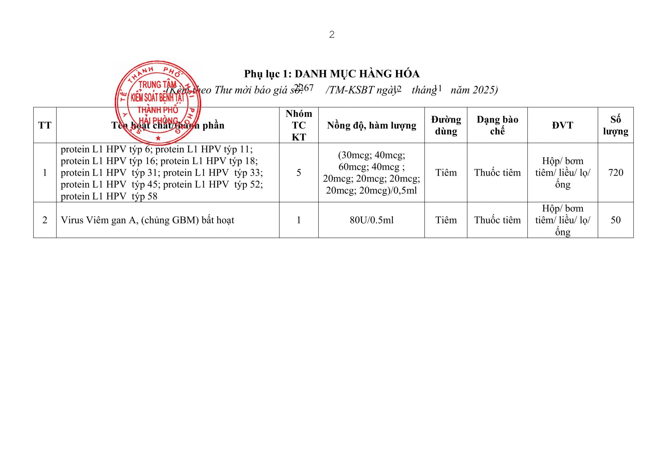 Trang chủChưa phân loại2267 TMBG mua vacxin phòng Ung thư Cổ tử cung và viêm... 2267 TMBG mua vacxin phòng Ung thư Cổ tử cung và viêm gan A virus 13 Tháng mười một, 2025 Chia sẻ Facebook Email Print Thu moi bao gia.signed XEM THÊM 107/KSBT-TCHC v/v chào giá in phiếu tiêm chủng 15 Tháng 1, 2026 92/KSBT-TCHC chào giá cung cấp dịch vụ mua VPP 2026 14 Tháng 1, 2026 79 TM-KSBT Thư mời báo giá dịch vụ kiểm nghiệm các thông số nước sạch 14 Tháng 1, 2026 TIN PHỔ BIẾN Sở Y tế khuyến cáo bảo vệ sức khỏe người dân trong thời điểm ô nhiễm không khí... 19 Tháng 1, 2026 19 Tháng 1, 2026 Thông điệp Phòng, chống bệnh sốt xuất huyết 16 Tháng 1, 2026 Ngành Y tế đóng góp tích cực vào phát triển kinh tế, xã hội thành phố. 16 Tháng 1, 2026 Xem thêm