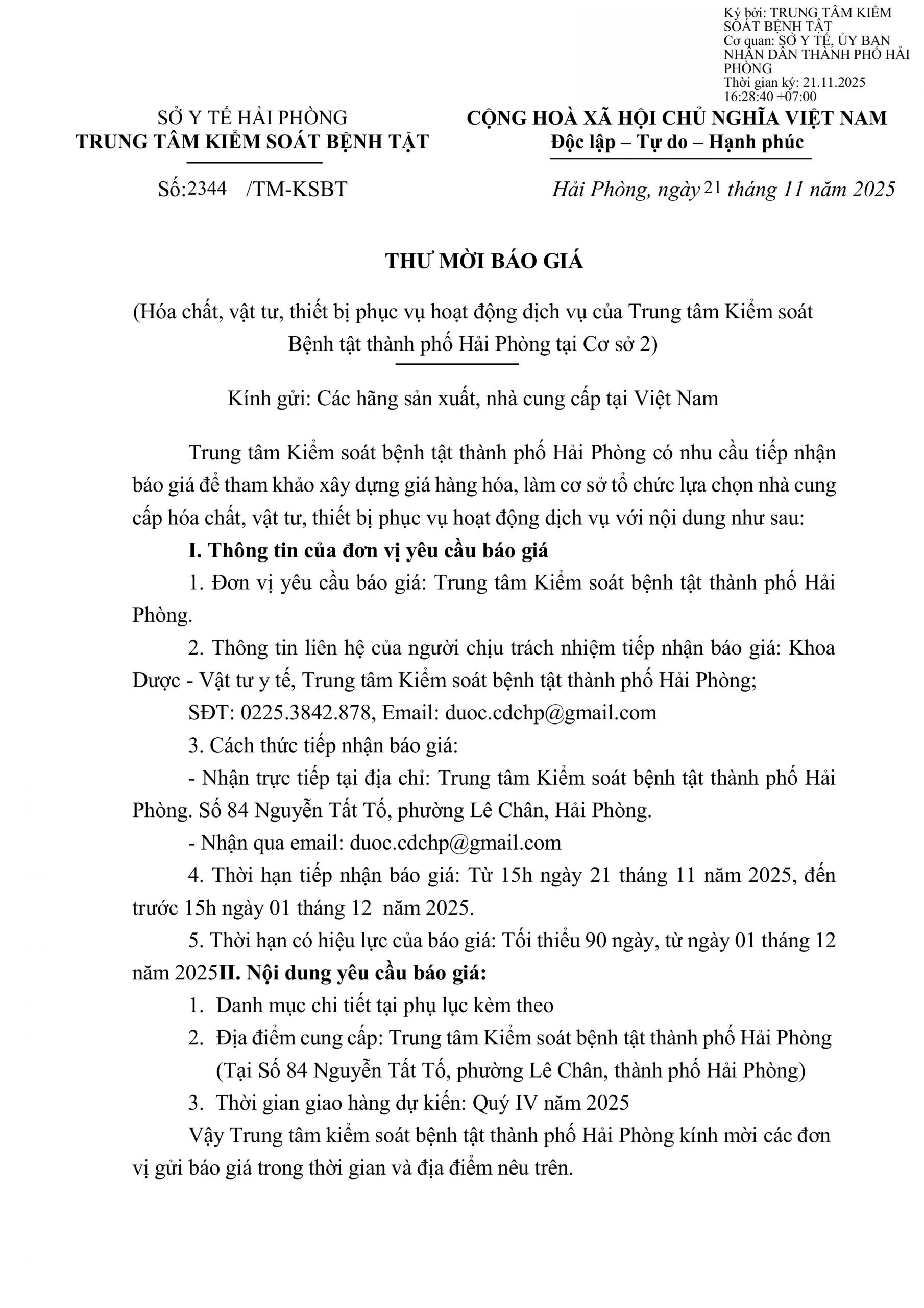 2344 Thư mời báo giá hoá chất, vật tư, thiết bị tại cơ sở 2 21112025