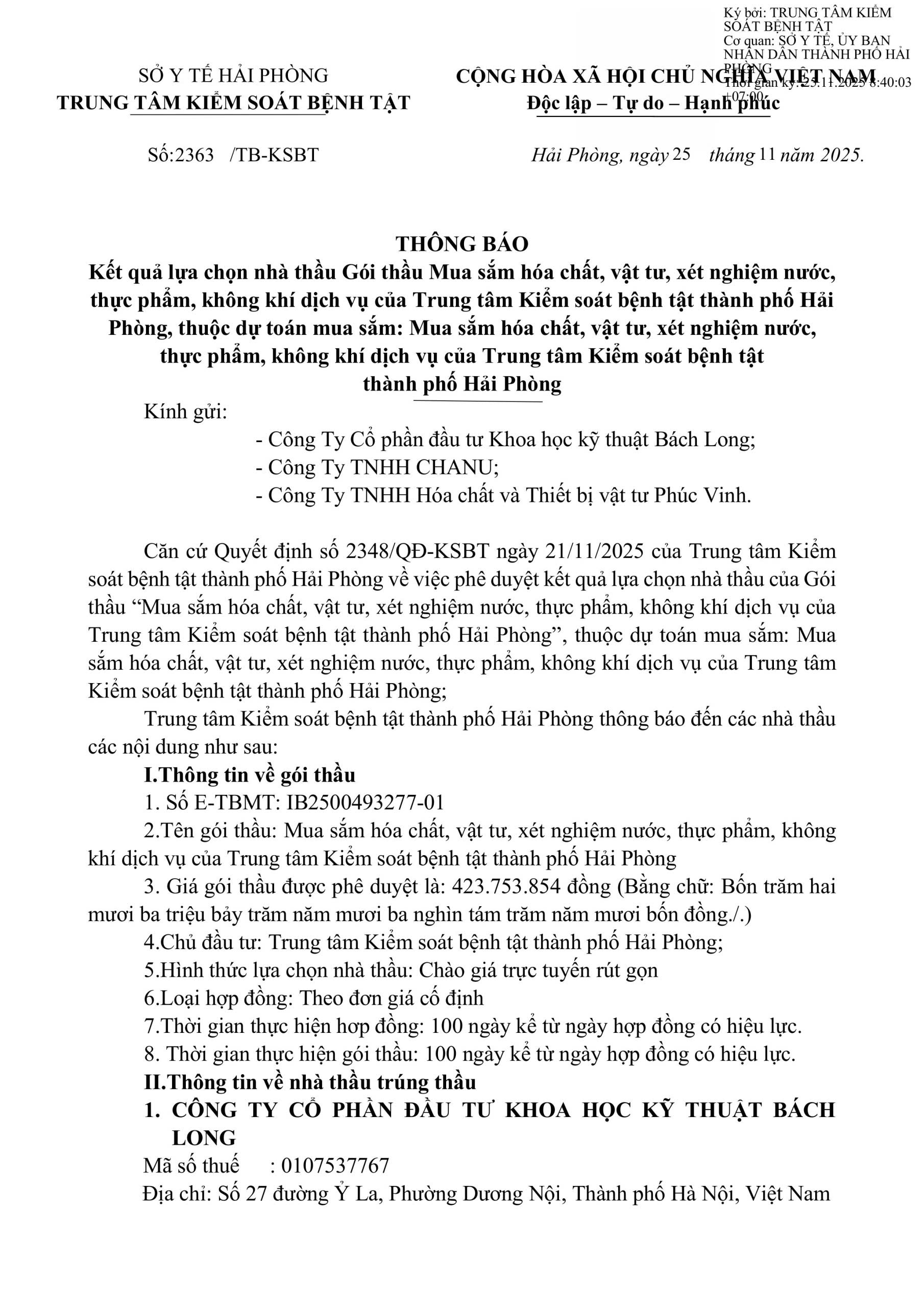 Trang chủThông tin mua sắm2363 TB kết quả lựa chọn gói thầu 25112025 2363 TB kết quả lựa chọn gói thầu 25112025 25 Tháng mười một, 2025 Chia sẻ Facebook Email Print XEM THÊM Sở Y tế khuyến cáo bảo vệ sức khỏe người dân trong thời điểm ô nhiễm không khí ở mức cao 19 Tháng 1, 2026 19 Tháng 1, 2026 Thông điệp Phòng, chống bệnh sốt xuất huyết 16 Tháng 1, 2026 TIN PHỔ BIẾN Sở Y tế khuyến cáo bảo vệ sức khỏe người dân trong thời điểm ô nhiễm không khí... 19 Tháng 1, 2026 19 Tháng 1, 2026 Thông điệp Phòng, chống bệnh sốt xuất huyết 16 Tháng 1, 2026 Ngành Y tế đóng góp tích cực vào phát triển kinh tế, xã hội thành phố. 16 Tháng 1, 2026 Xem thêm