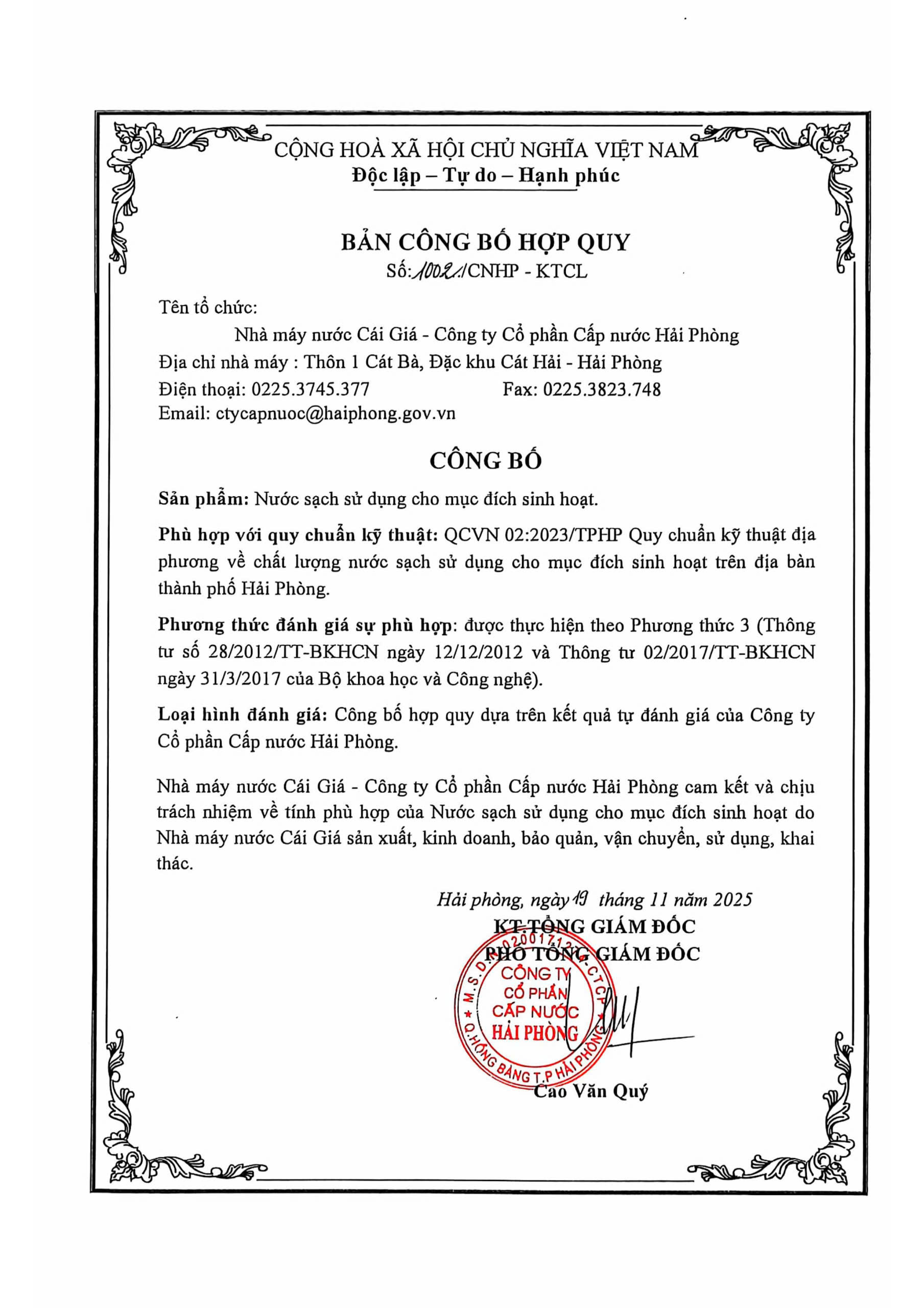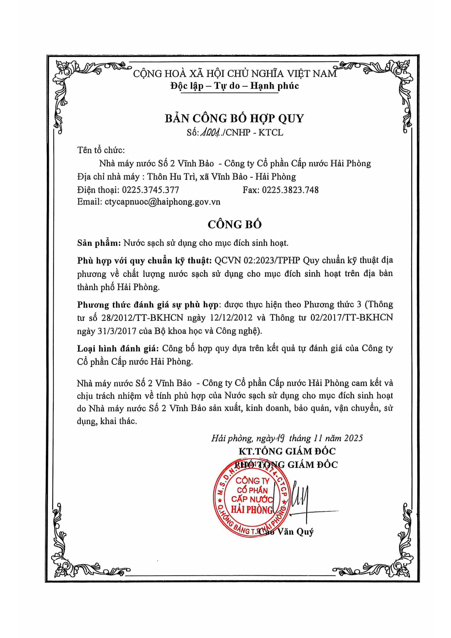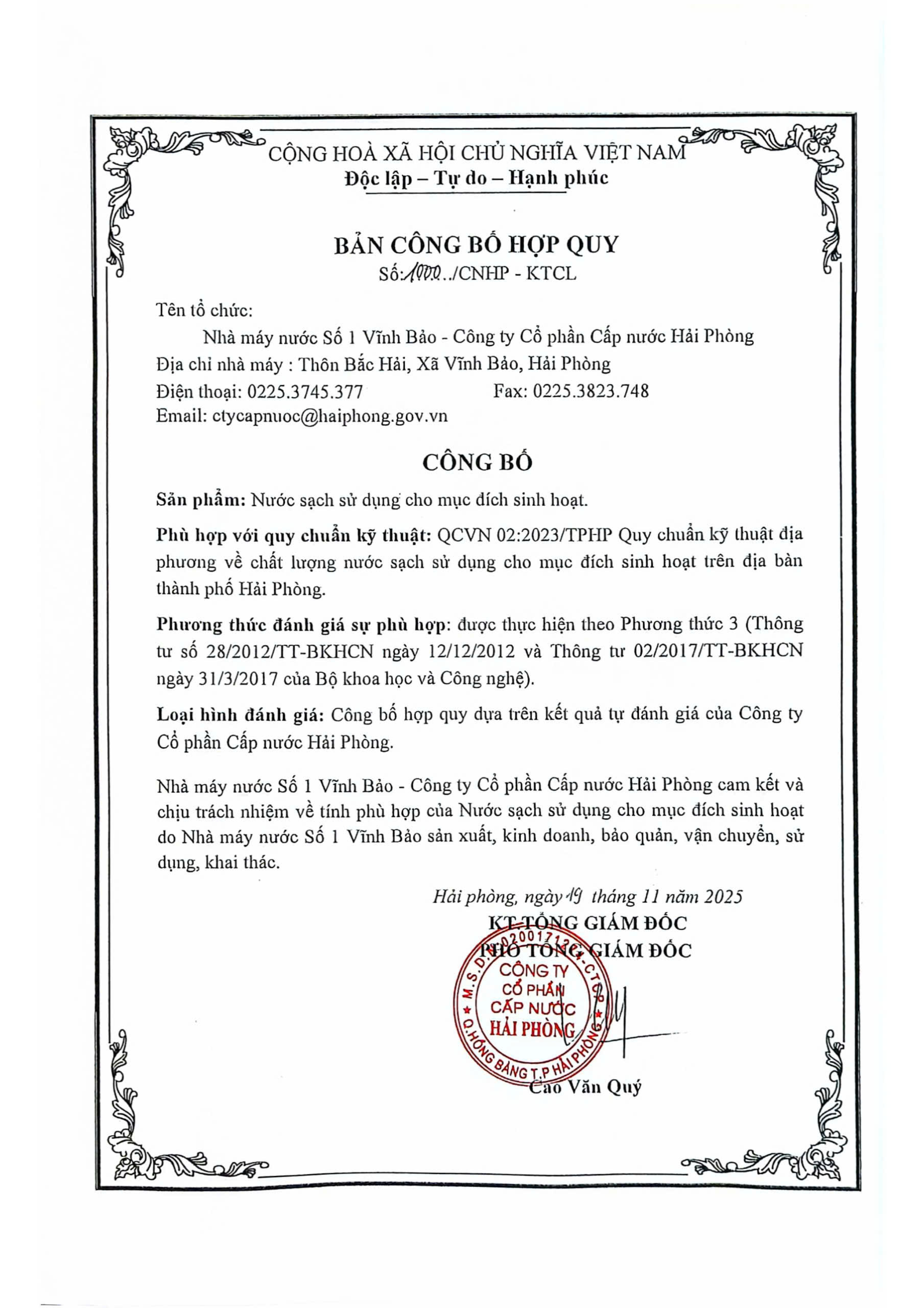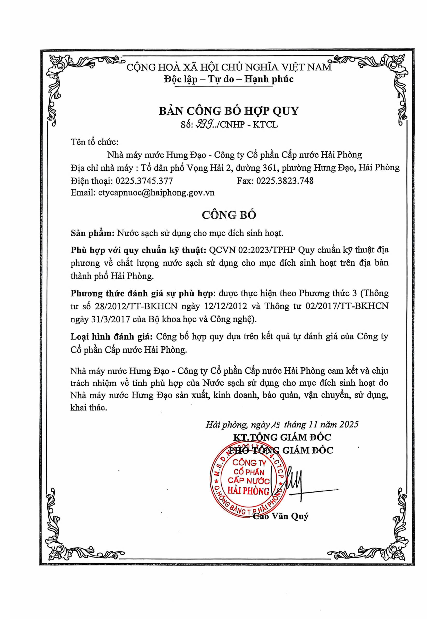 Bản công bố hợp quy 19112025