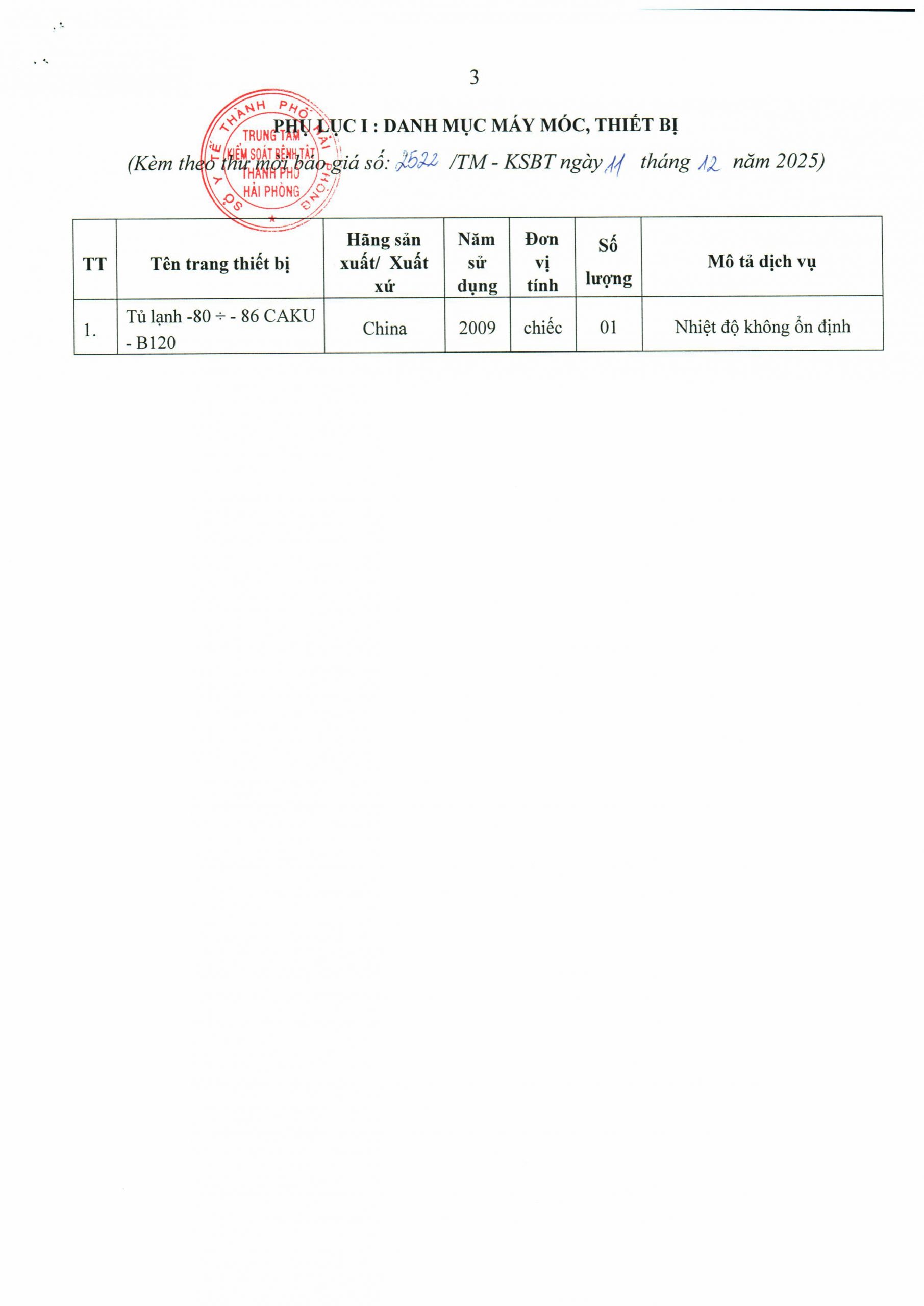 Trang chủThông tin mua sắm2522 TMBG sửa chữa tủ lạnh 2522 TMBG sửa chữa tủ lạnh 15 Tháng 12, 2025 Chia sẻ Facebook Email Print XEM THÊM Sở Y tế khuyến cáo bảo vệ sức khỏe người dân trong thời điểm ô nhiễm không khí ở mức cao 19 Tháng 1, 2026 19 Tháng 1, 2026 Thông điệp Phòng, chống bệnh sốt xuất huyết 16 Tháng 1, 2026 TIN PHỔ BIẾN Sở Y tế khuyến cáo bảo vệ sức khỏe người dân trong thời điểm ô nhiễm không khí... 19 Tháng 1, 2026 19 Tháng 1, 2026 Thông điệp Phòng, chống bệnh sốt xuất huyết 16 Tháng 1, 2026 Ngành Y tế đóng góp tích cực vào phát triển kinh tế, xã hội thành phố. 16 Tháng 1, 2026 Xem thêm