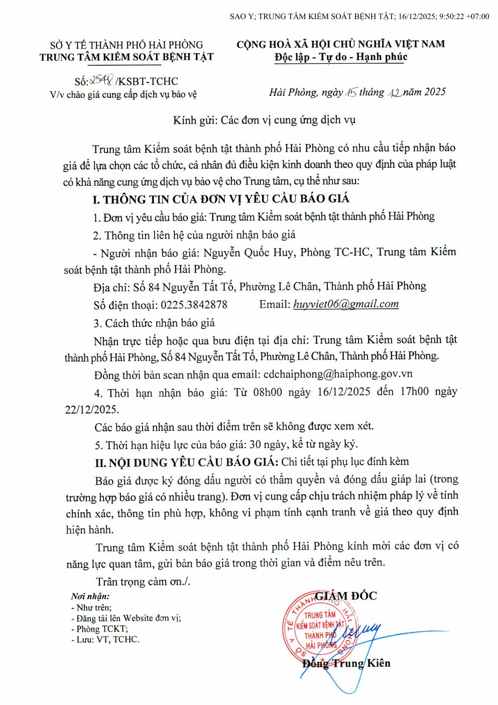 Trang chủThông tin mua sắm2548 Chào giá cung cấp dịch vụ bảo vệ 2548 Chào giá cung cấp dịch vụ bảo vệ 15 Tháng 12, 2025 Chia sẻ Facebook Email Print XEM THÊM Sở Y tế khuyến cáo bảo vệ sức khỏe người dân trong thời điểm ô nhiễm không khí ở mức cao 19 Tháng 1, 2026 19 Tháng 1, 2026 Thông điệp Phòng, chống bệnh sốt xuất huyết 16 Tháng 1, 2026 TIN PHỔ BIẾN Sở Y tế khuyến cáo bảo vệ sức khỏe người dân trong thời điểm ô nhiễm không khí... 19 Tháng 1, 2026 19 Tháng 1, 2026 Thông điệp Phòng, chống bệnh sốt xuất huyết 16 Tháng 1, 2026 Ngành Y tế đóng góp tích cực vào phát triển kinh tế, xã hội thành phố. 16 Tháng 1, 2026 Xem thêm