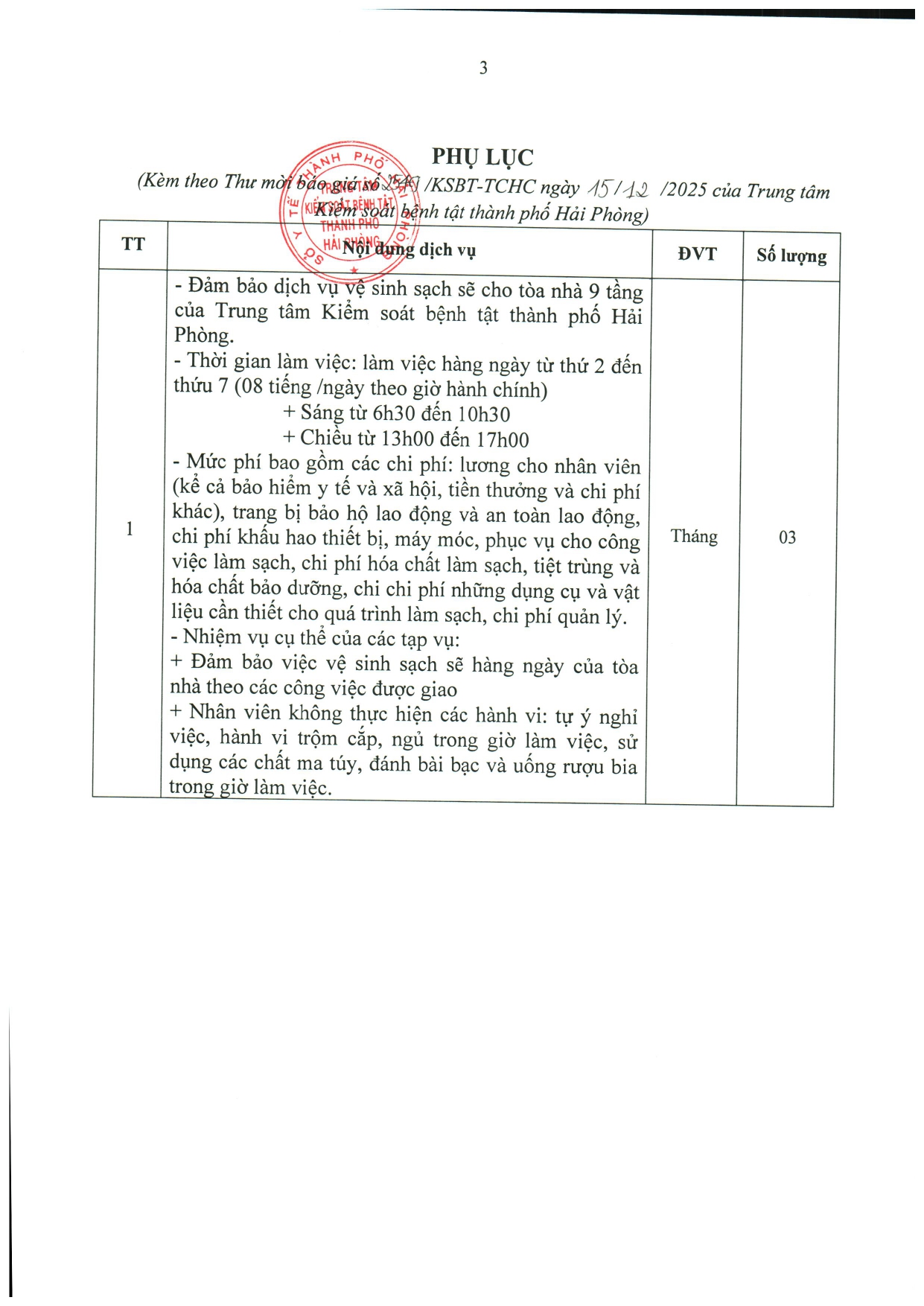 2549 chào giá cung cấp dịch vụ vệ sinh công nghiệp