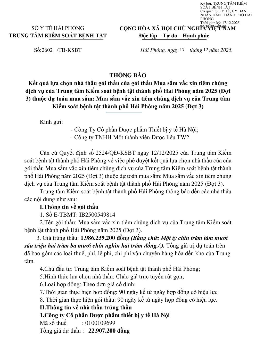 Trang chủThông tin mua sắm2602 TB kết quả lựa chọn gói thầu