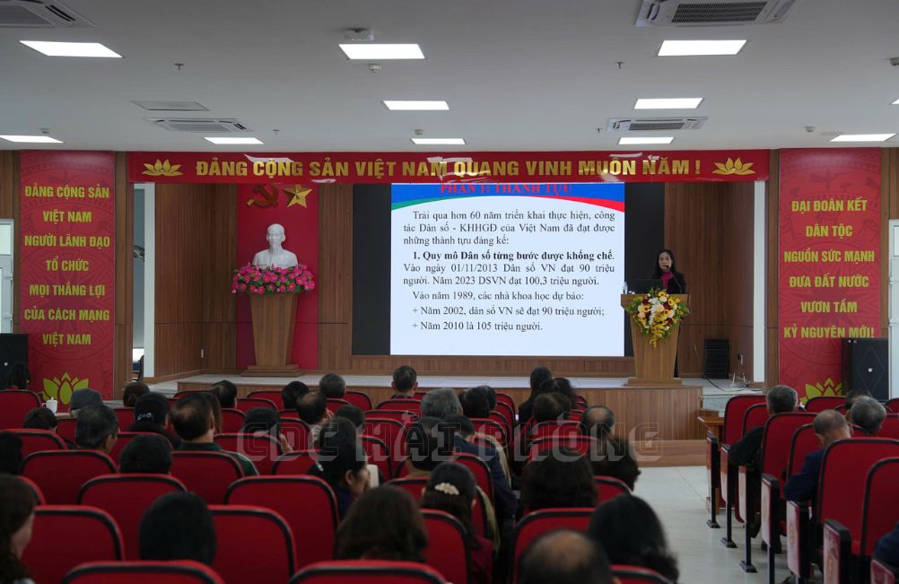Tại hội nghị, đồng chí Vũ Thị Bích Hạnh – Phó Chi cục trưởng Chi cục Dân số và Trẻ em đã tuyên truyền, phổ biến chủ trương, đường lối, chính sách của Đảng, Nhà nước cũng như những thành tựu, thách thức về công tác dân số trong tình hình mới như: Luật Dân số; Kết luận số 149-KL/TW, ngày 10/4/2025 của Bộ Chính trị về đẩy mạnh thực hiện Nghị quyết số 21-NQ/TW theo chỉ đạo của Bộ Chính trị; Định hướng công tác dân số trong giai đoạn mới, đặc biệt là các nhiệm vụ, giải pháp nhằm duy trì mức sinh thay thế, can thiệp giảm thiểu tình trạng mất cân bằng giới tính khi sinh, nâng cao chất lượng dân số, thích ứng với tình trạng già hóa dân số để bảo đảm phát triển bền vững….