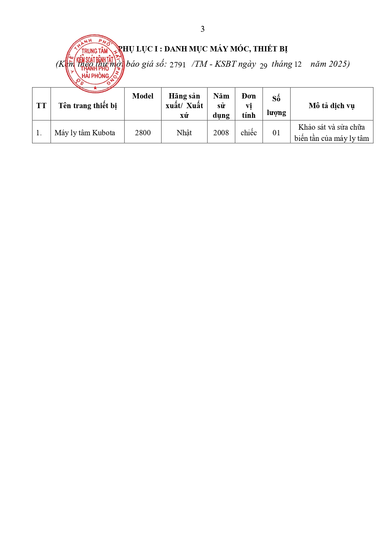 Trang chủThông tin mua sắmTMBG 2791 sửa chữa máy ly tâm cơ sở 1