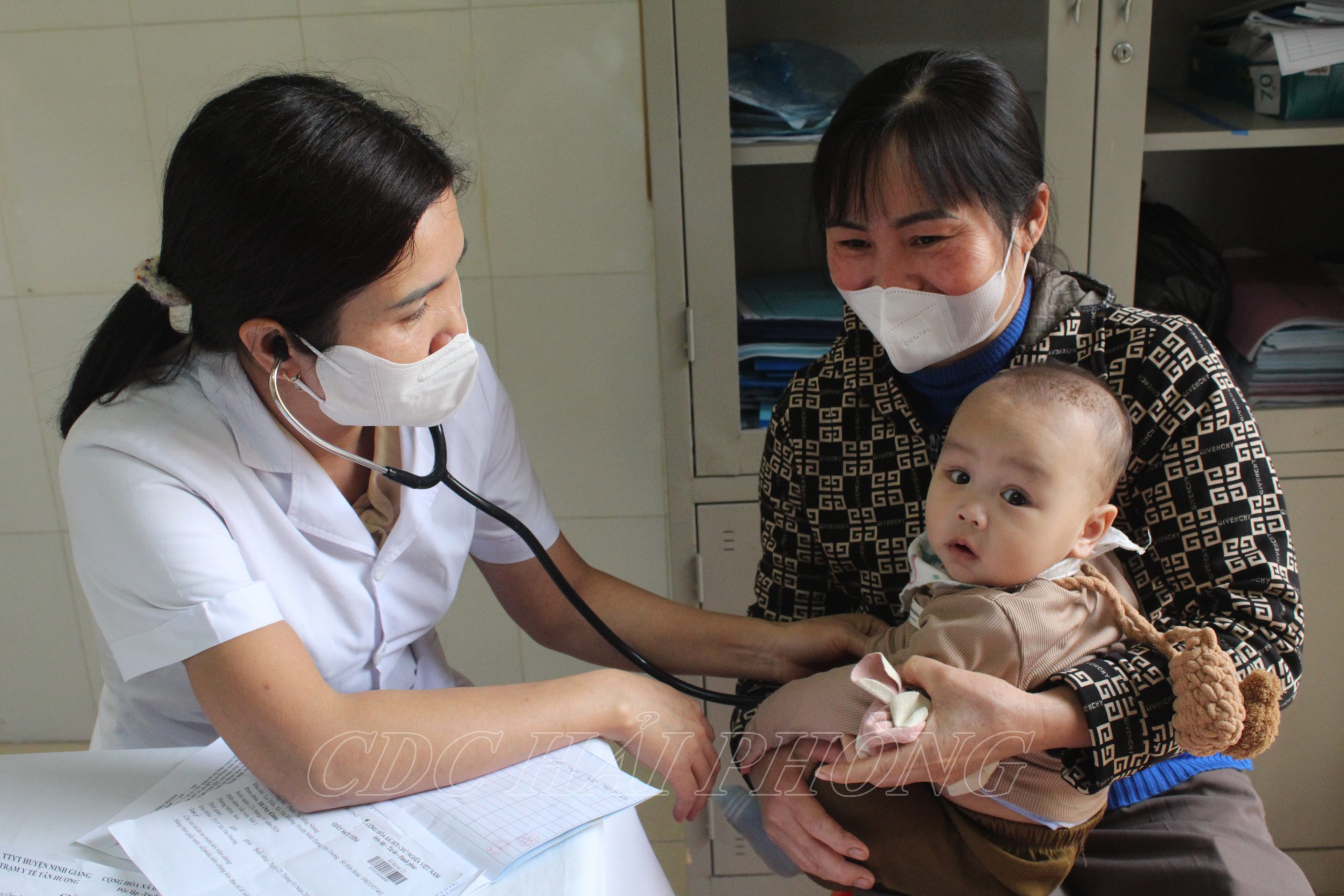 Kiểm tra sức khỏe cho trẻ trước khi tiêm chủng tại Trạm Y tế xã Vĩnh Lại số 1