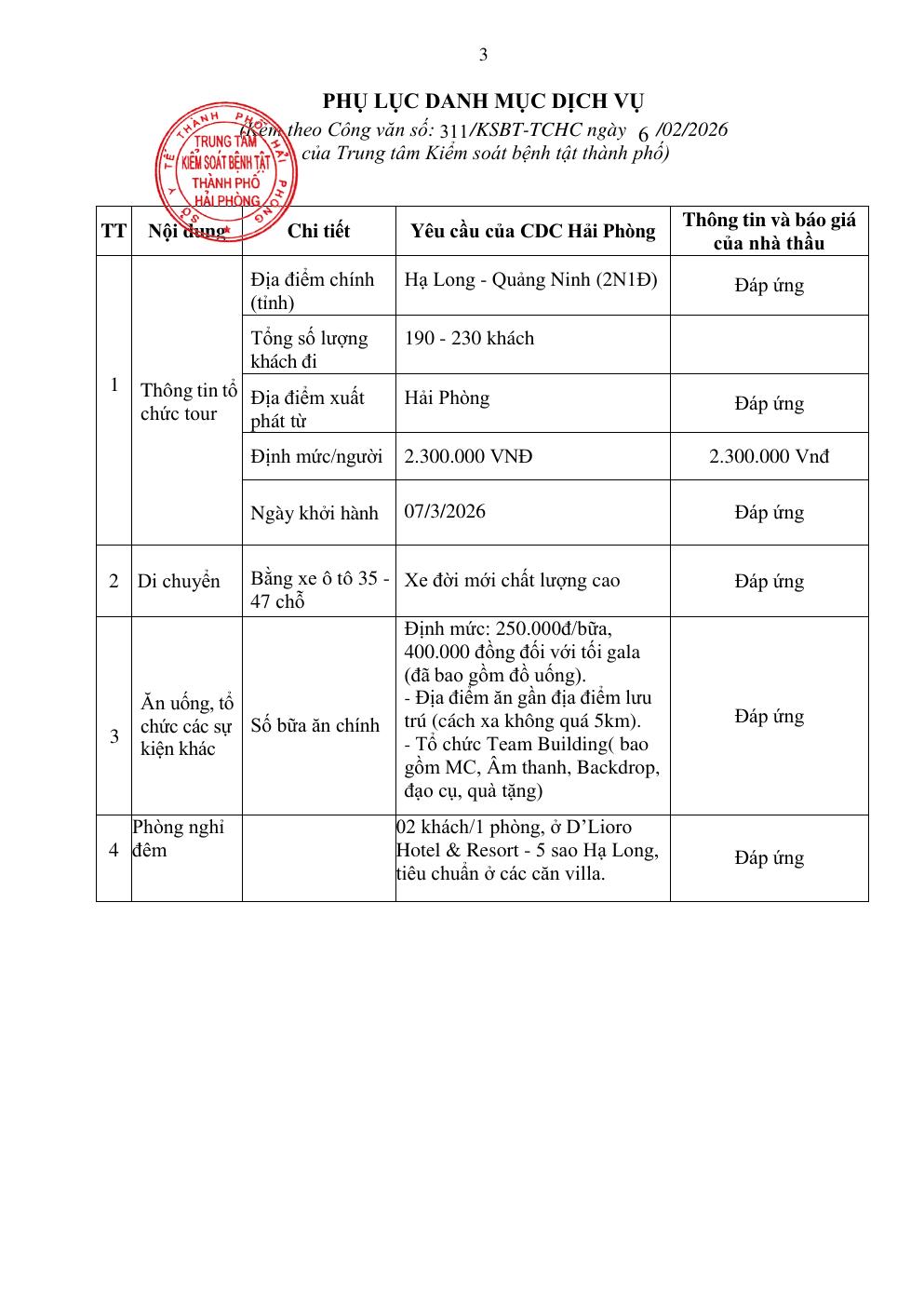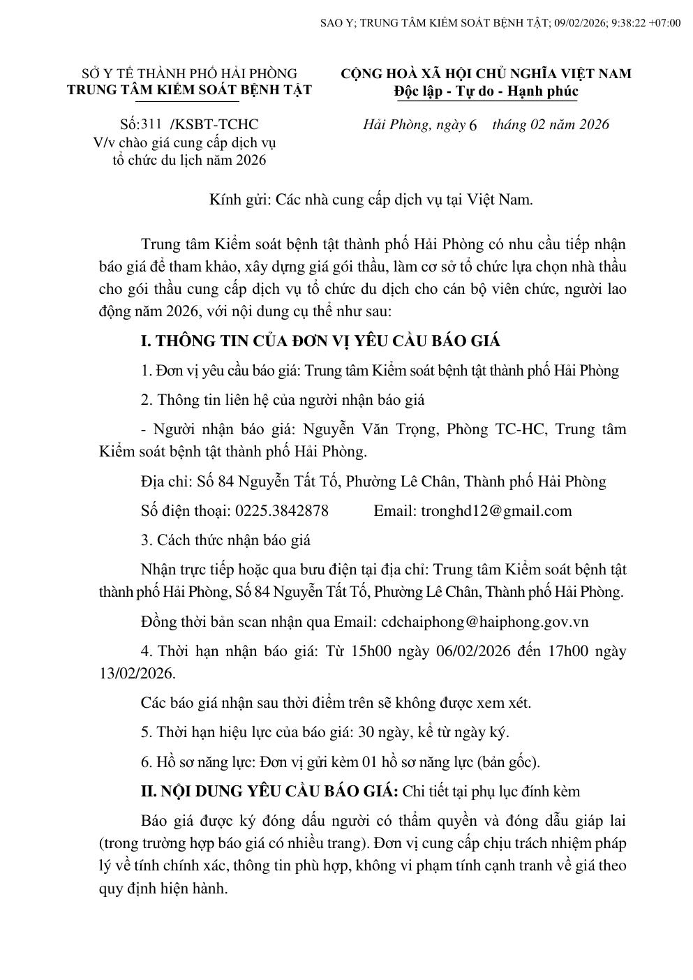 Trang chủThông tin mua sắm311 chào giá cung cấp dịch vụ tổ chức du lịch 2026 311 chào giá cung cấp dịch vụ tổ chức du lịch 2026 6 Tháng 2, 2026 Chia sẻ Facebook Email Print XEM THÊM Hiệu quả triển khai kỹ thuật IUI 5 Tháng 3, 2026 Kịp thời phát hiện, điều trị tích cực ca bệnh sốt rét ác tính 5 Tháng 3, 2026 Tiểu sử tóm tắt của người ứng cử đại biểu quốc hội khóa XVI 5 Tháng 3, 2026 TIN PHỔ BIẾN Hiệu quả triển khai kỹ thuật IUI 5 Tháng 3, 2026 Kịp thời phát hiện, điều trị tích cực ca bệnh sốt rét ác tính 5 Tháng 3, 2026 Tiểu sử tóm tắt của người ứng cử đại biểu quốc hội khóa XVI 5 Tháng 3, 2026 Thông điệp Ngày Quốc tế Nâng cao Nhận thức về HPV 5 Tháng 3, 2026 Xem thêm