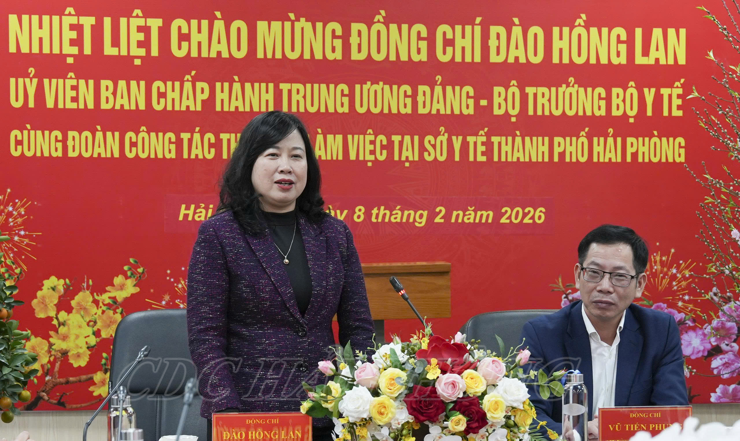 Chiều 8/2, Đoàn công tác của Bộ Y tế do đồng chí Đào Hồng Lan, Ủy viên Ban chấp hành Trung ương Đảng, Bộ trưởng Bộ Y tế làm trưởng đoàn đã đến thăm, động viên chúc Tết một số đơn vị, cơ sở y tế trên địa bàn thành phố Hải Phòng. Đoàn đến thăm và làm việc với Sở Y tế, Bệnh viện Hữu nghị Việt Tiệp, xã Kim Thành, Bệnh viện Y học Cổ truyền Hải Dương, trường Cao đẳng Dược Trung ương Hải Dương… Cùng đi với Bộ trưởng có các đồng chí lãnh đạo các Cục, Vụ và một số bệnh viện tuyến Trung ương như: Tai Mũi Họng, Nhi.