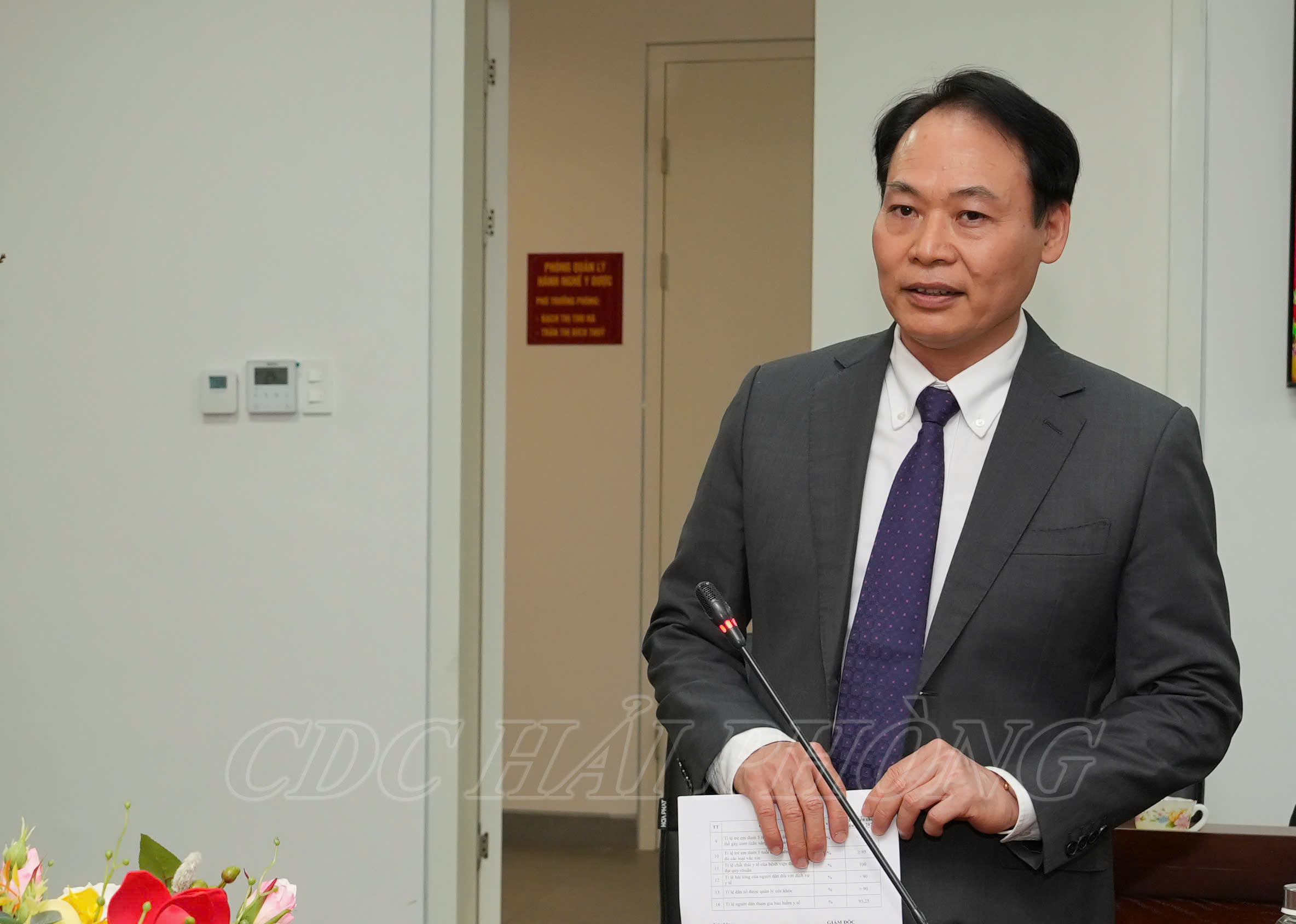 PGS.TS Lê Minh Quang, Giám đốc Sở Y tế báo cáo hoạt động nổi bật của ngành y tế Hải Phòng với Bộ trưởng và Đoàn công tác.