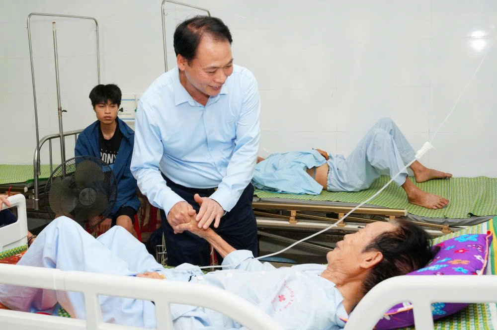 PGS.TS Lê Minh Quang, Giám đốc Sở Y tế thăm hỏi bệnh nhân đang điều trị tại Trung tâm Y tế Ninh Giang