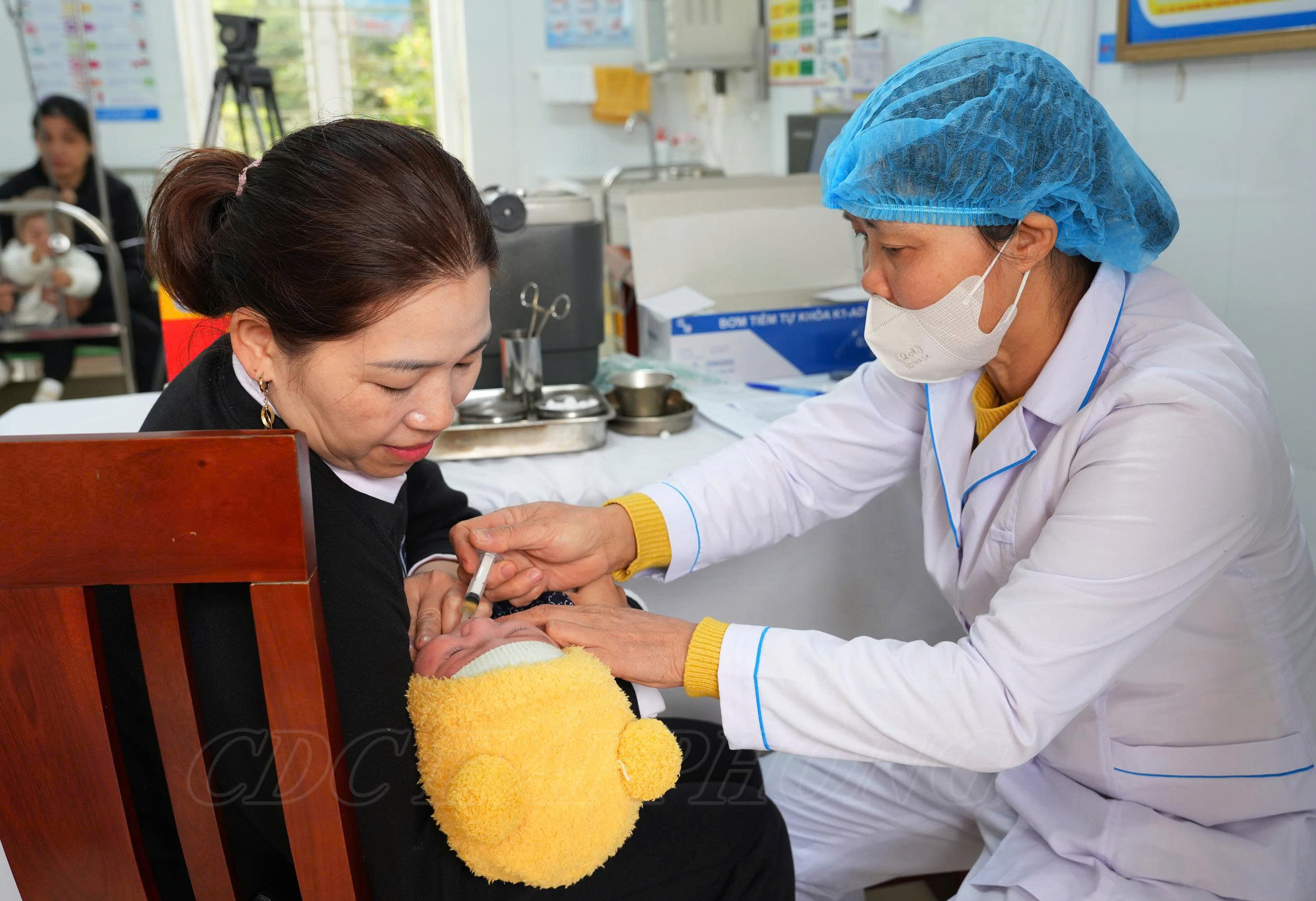 Lãnh đạo CDC Hải Phòng giám sát việc tổ chức tiêm chủng mở rộng tại Trạm Y tế Bắc Thanh Miện