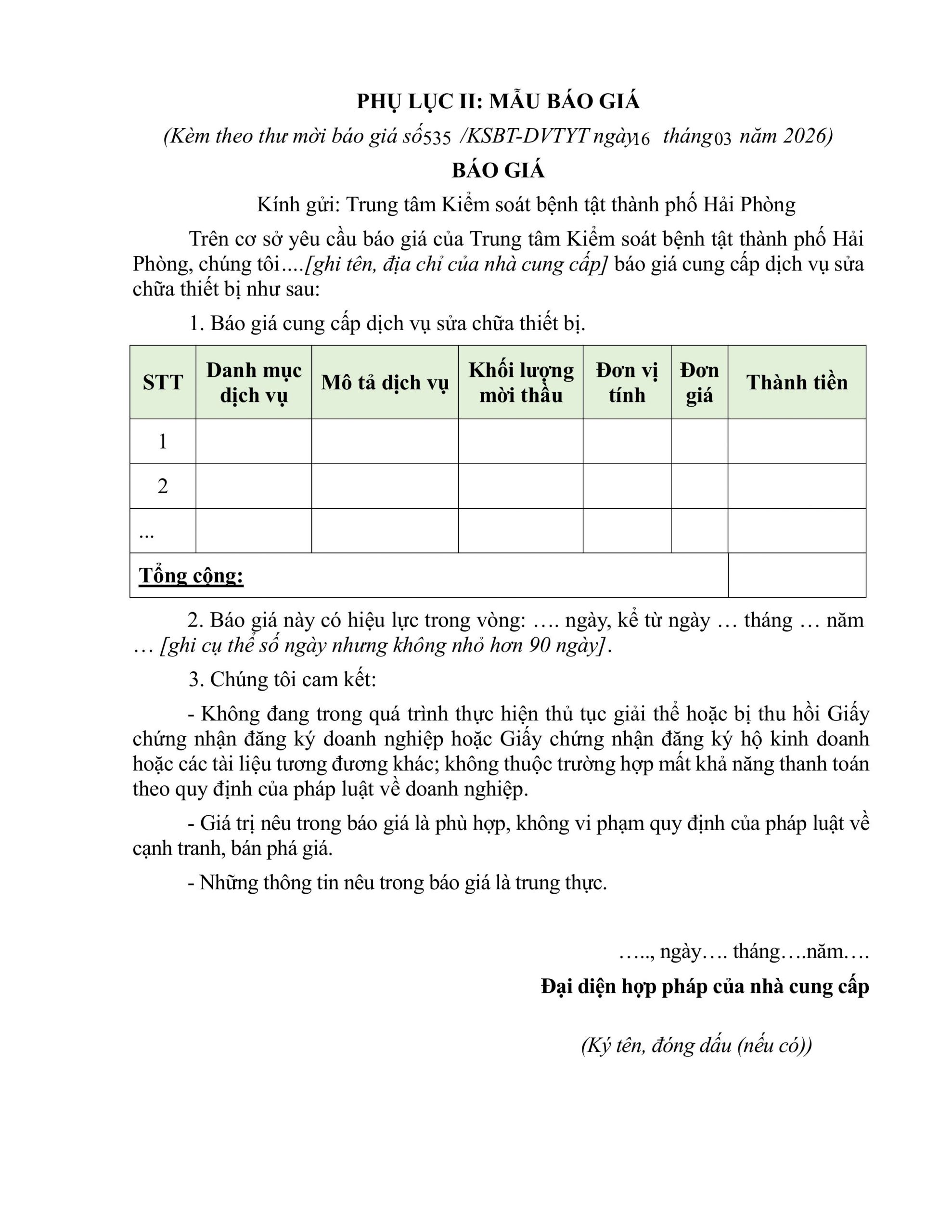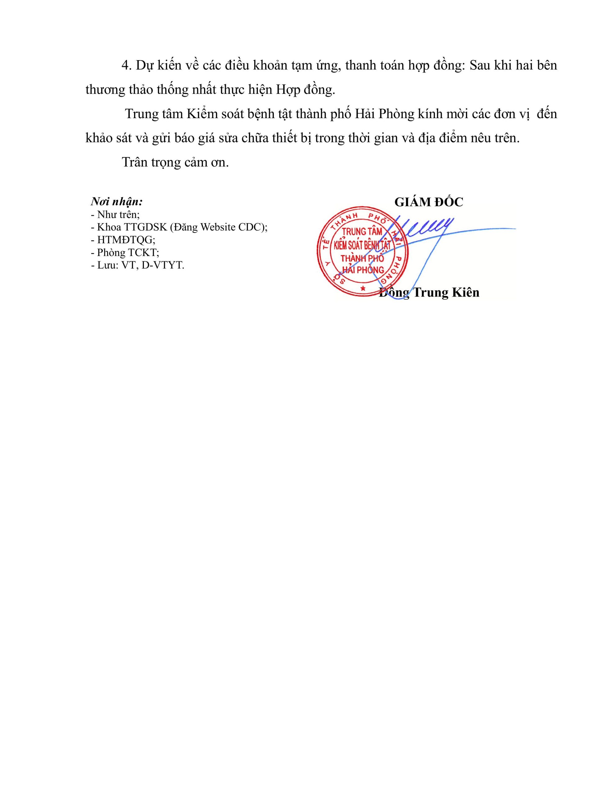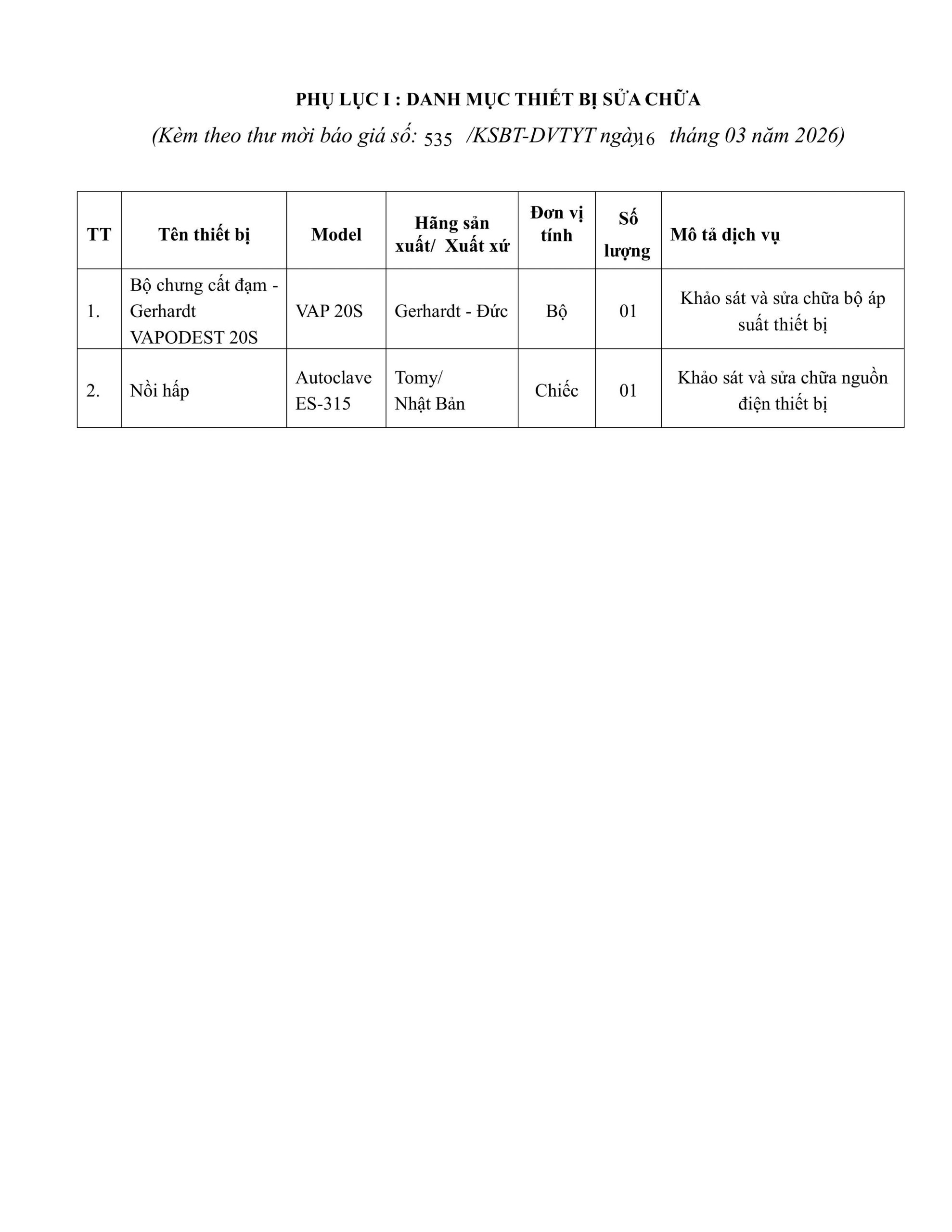 535 Thư mời báo giá sửa chữa Bộ chưng cất đạm, nồi hấp