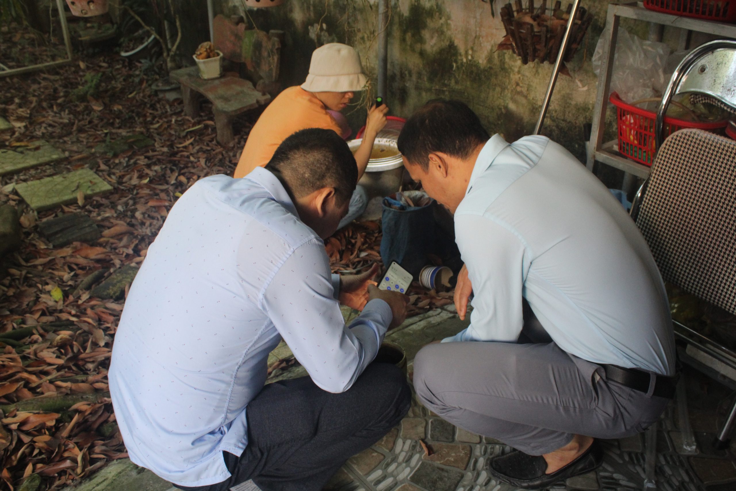 Cán bộ Trung tâm Kiểm soát bệnh tật TP Hải Phòng kiểm tra mật độ muỗi, bọ gậy các hộ dân tại phường Thạch Khôi