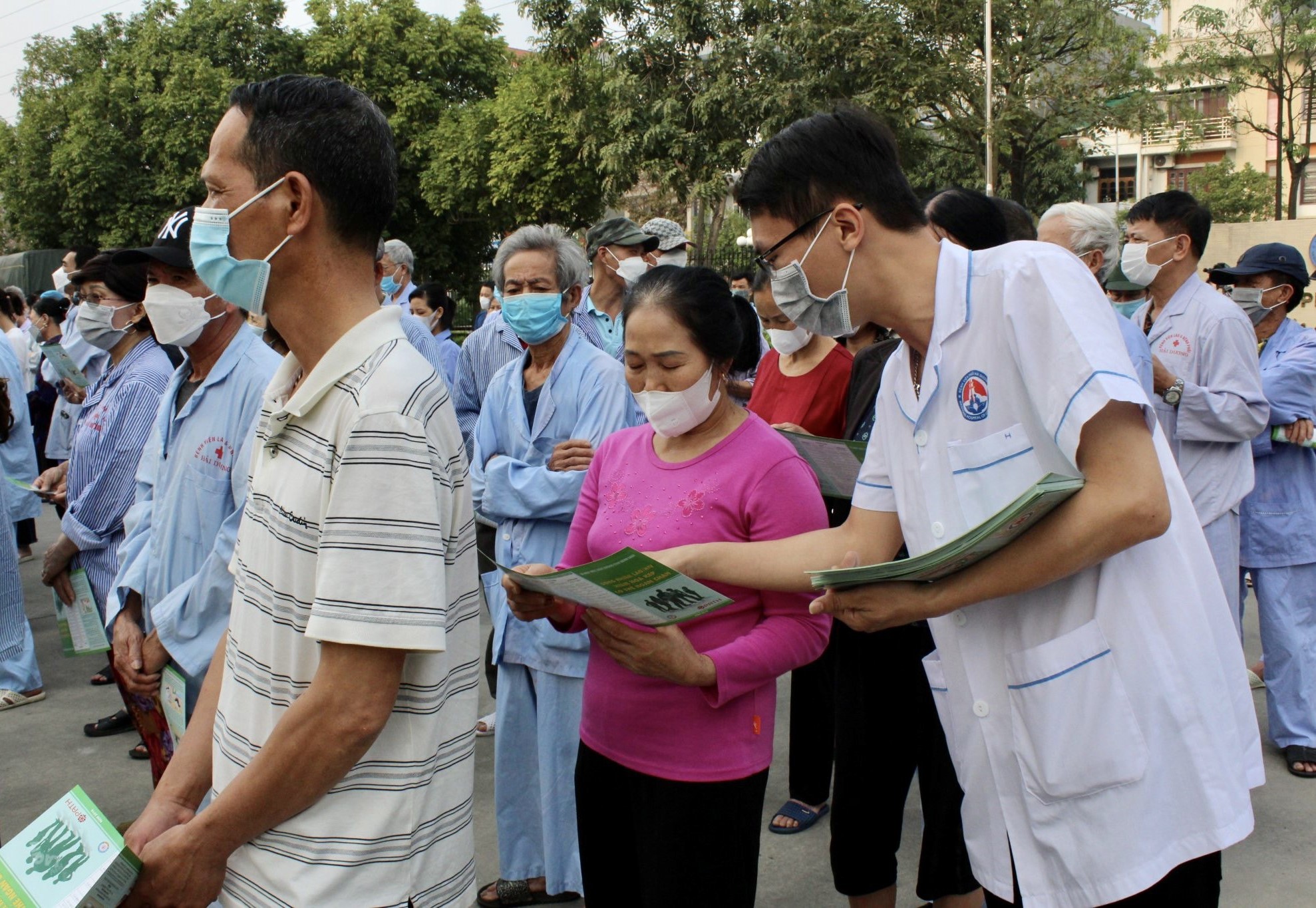 Phát tờ rơi tuyên truyền phòng, chống bệnh lao tại Bệnh viện Phổi Hải Dương