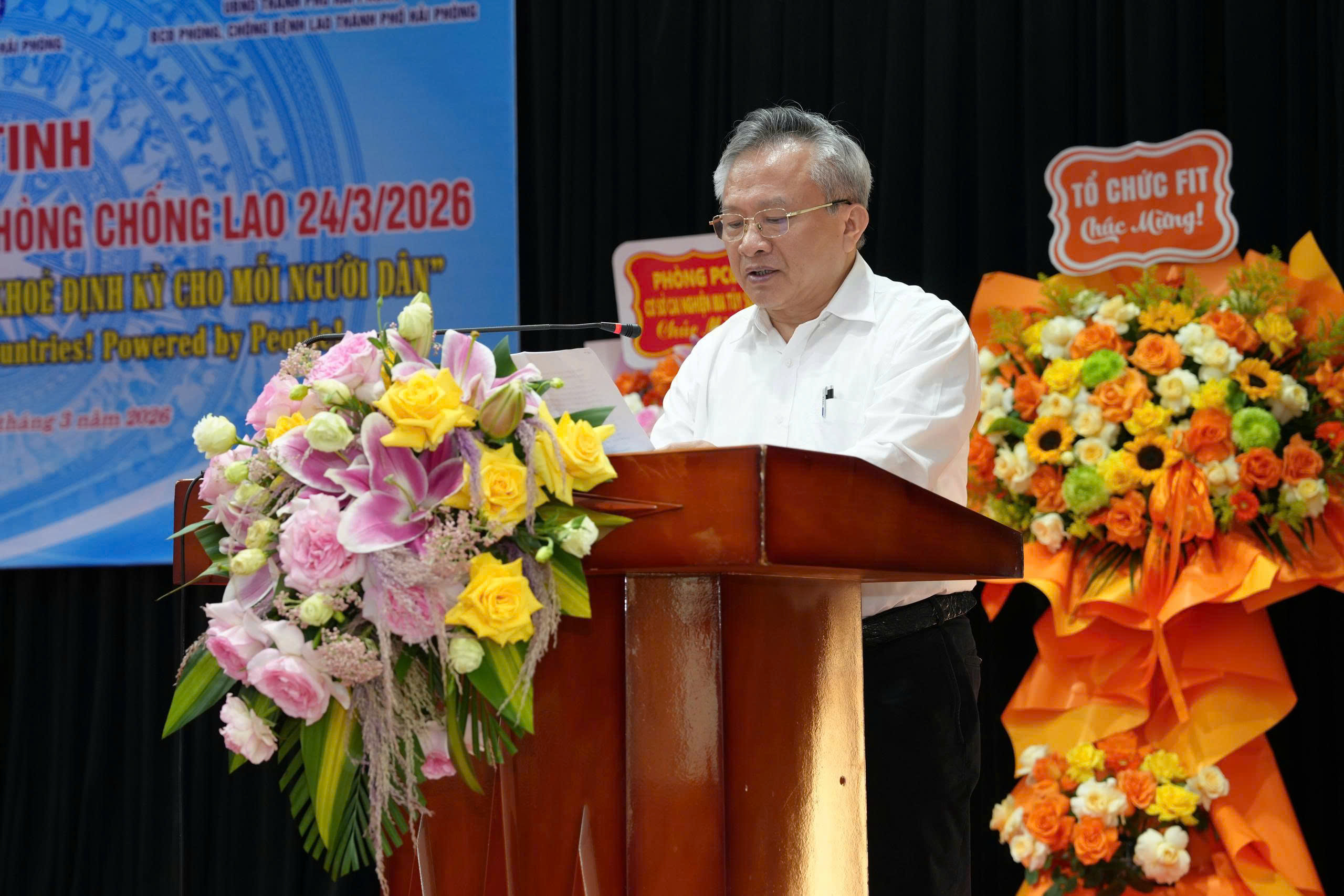 Sáng 24/3, Ban Chỉ đạo phòng, chống bệnh lao thành phố tổ chức Mít tinh hưởng ứng Ngày Thế giới phòng chống lao năm 2026 với chủ đề “ Phát hiện lao gắn với khám sức khỏe định kỳ cho mỗi người dân”. Tham dự Mít tinh có đồng chí Vũ Tiến Phụng, Ủy viên Ban Thường vụ Thành ủy, Phó Chủ tịch Ủy ban nhân dân thành phố; BSCKII Trần Quốc Trinh- Phó Giám đốc Sở Y tế Hải Phòng cùng các đơn vị có liên quan.