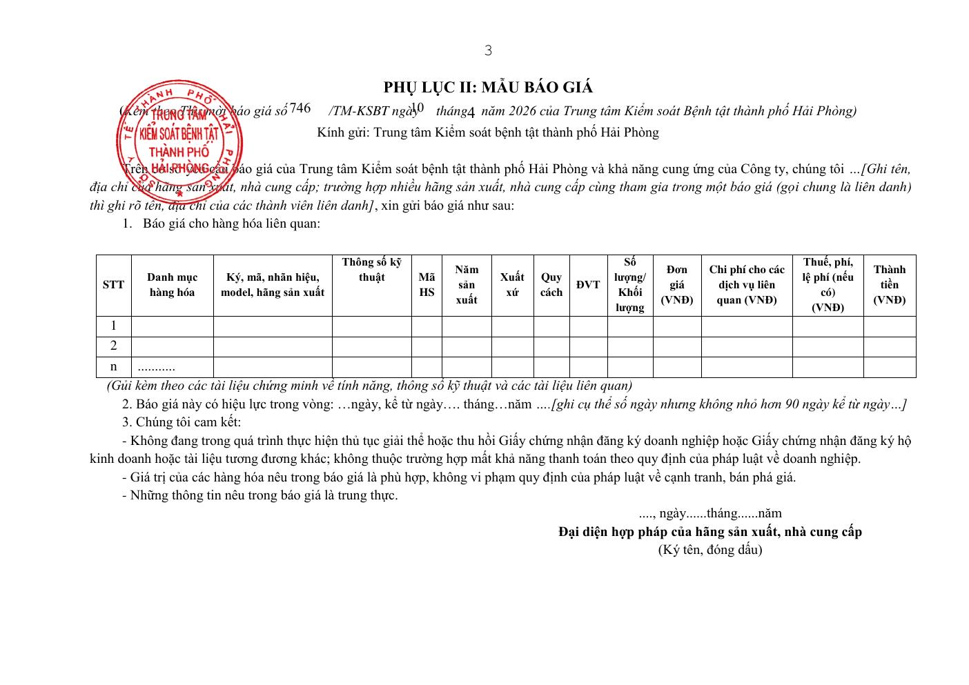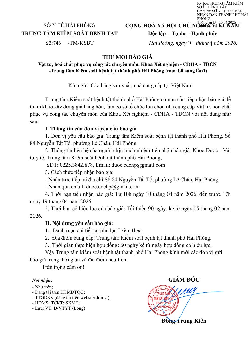 Trang chủThông tin mua sắm746 Thư mời báo giá vật, hoá chất 746 Thư mời báo giá vật, hoá chất 10 Tháng 4, 2026 Chia sẻ Facebook Email Print XEM THÊM 738 Thư mời báo giá 9 Tháng 4, 2026 723 Thư mời Báo giá Truyền thông các chương trình y tế trên báo và Phát thanh truyền hình 9 Tháng 4, 2026 732 thư mời báo giá 9 Tháng 4, 2026 TIN PHỔ BIẾN 746 Thư mời báo giá vật, hoá chất 10 Tháng 4, 2026 738 Thư mời báo giá 9 Tháng 4, 2026 723 Thư mời Báo giá Truyền thông các chương trình y tế trên báo và Phát thanh truyền... 9 Tháng 4, 2026 732 thư mời báo giá 9 Tháng 4, 2026 Xem thêm