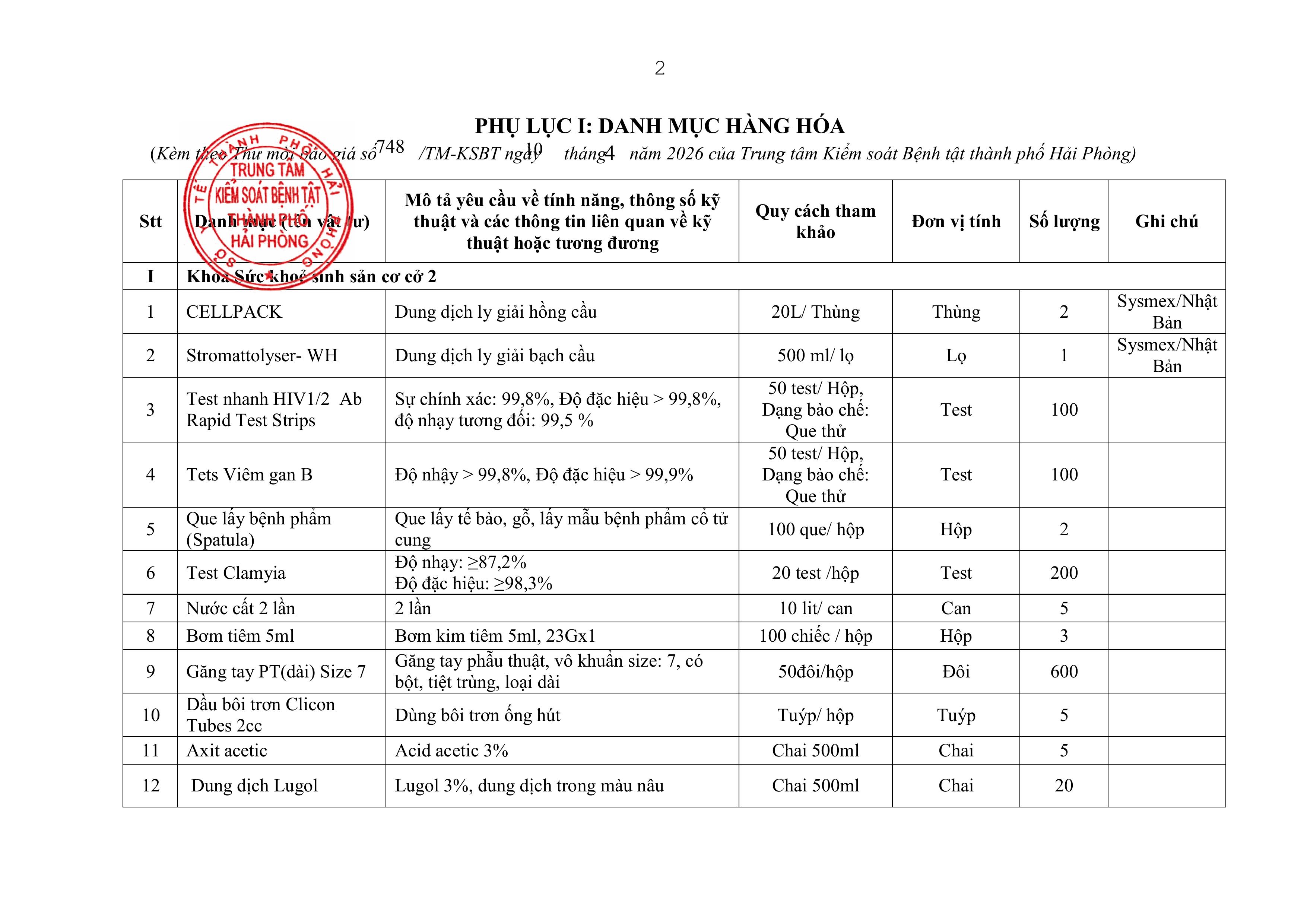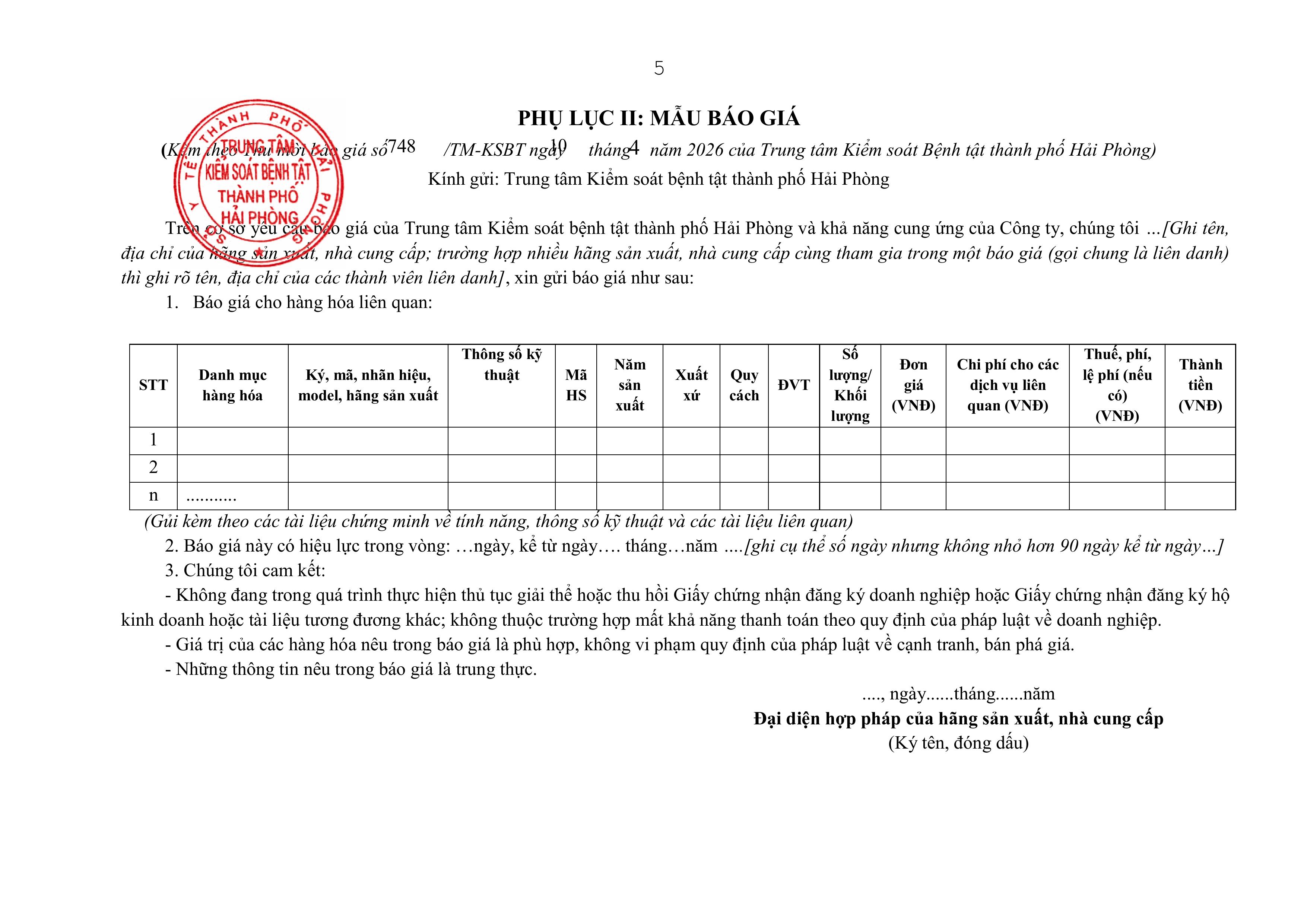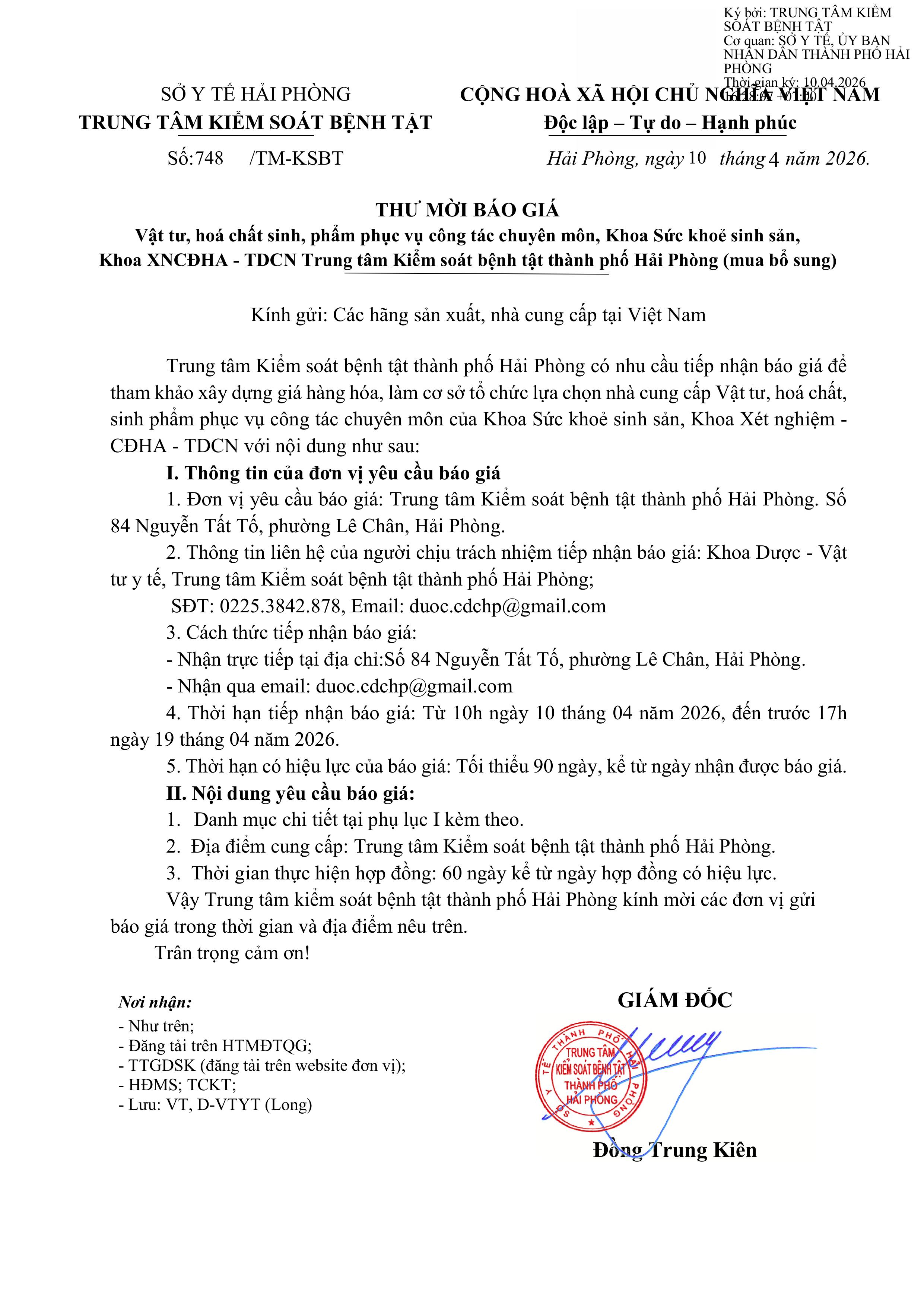 748 Thư mời báo giá vật tư, hoá chất, sinh phẩm