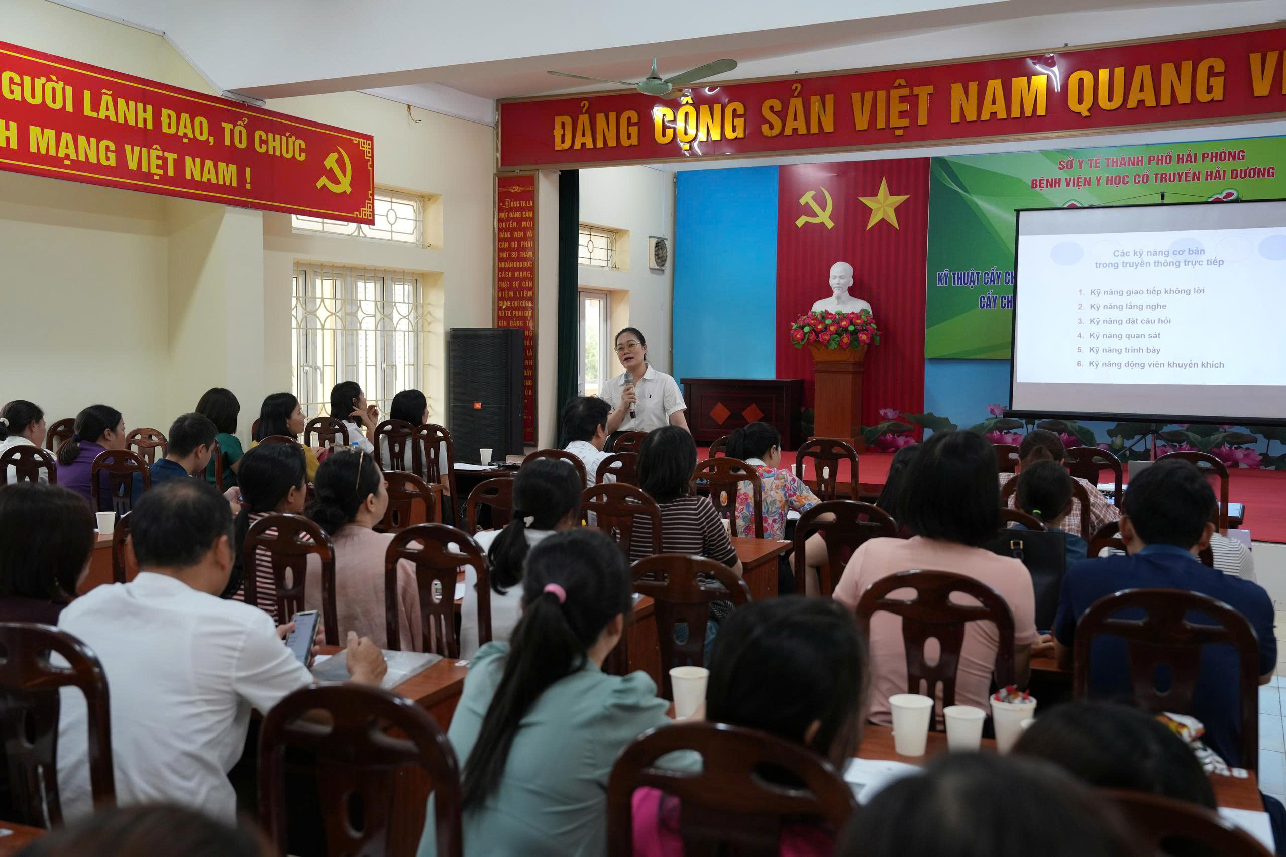 Thạc sĩ, bác sĩ Lê Tuyến truyền đạt kỹ năng truyền thông giáo dục sức khỏe cho học viên tại khu vực phía Tây Hải Phòng